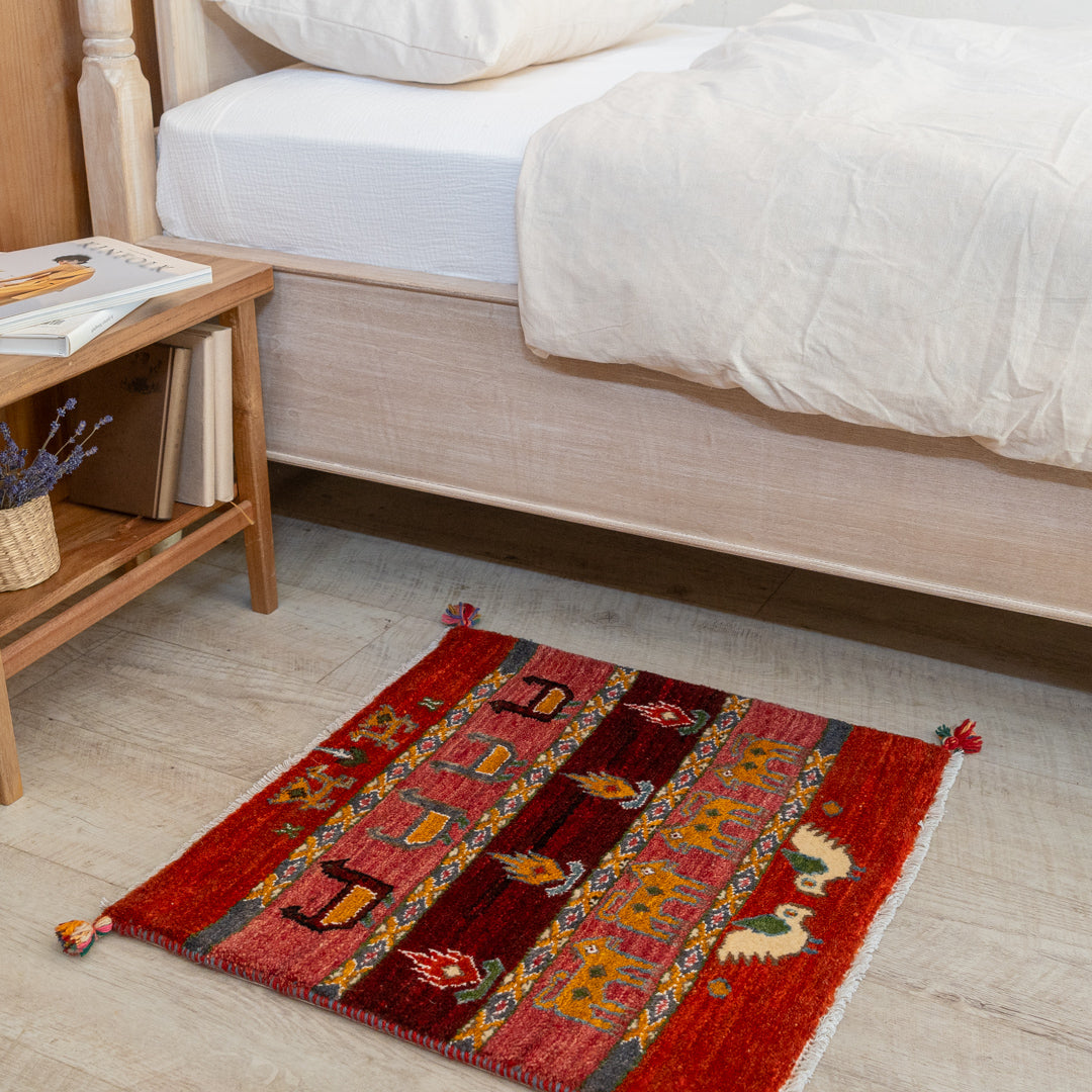 こちらのギャッベは細い糸で織られており、織るのに手間がかかる分、通常のギャッベより厚みが少なく織り目が詰んでいるリーズバフトギャッベです。