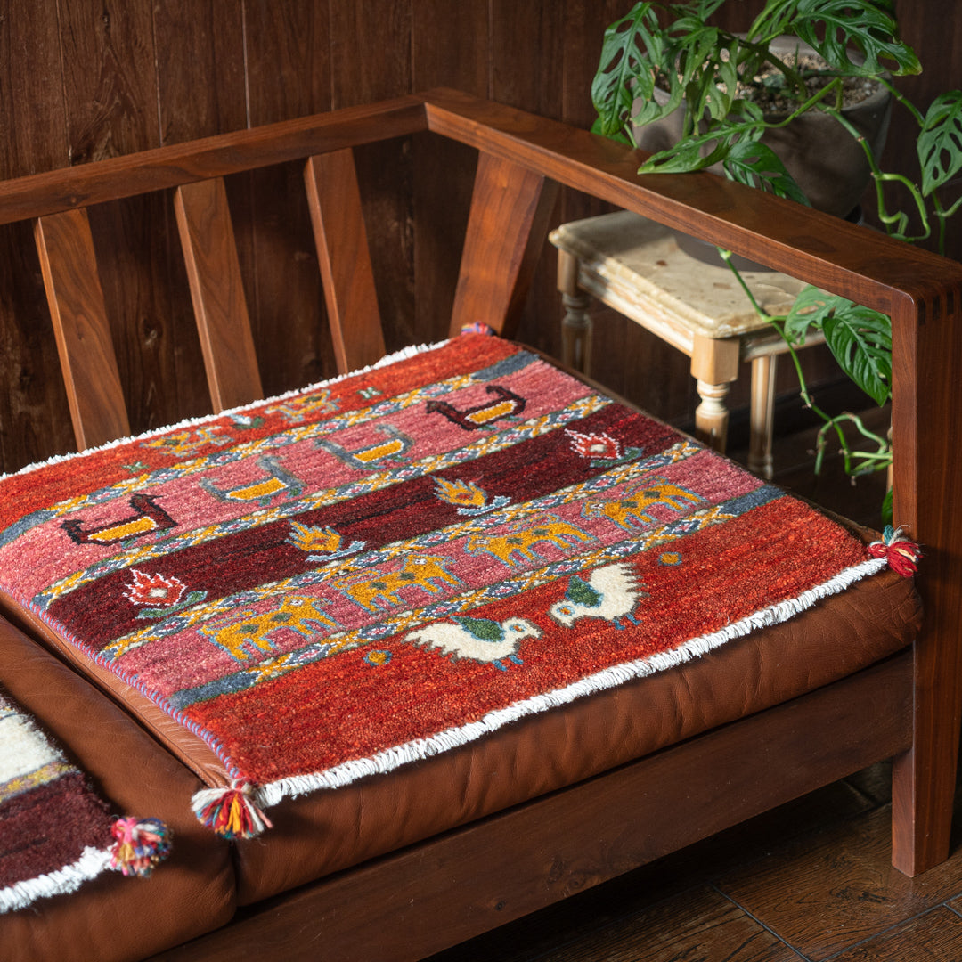 ギャッベはイランのザクロス山脈を遊牧しているカシュガイ族が手織りする、草木染の羊毛を使った毛足の長い生活に根付いた絨毯です。本商品に使用されているペルシャバリアントと呼ばれる羊毛は、過酷な環境であるザクロス山脈で生きていく為の優れた耐久性や、体温調整を上手に行うために多くの脂分を含んだ柔らかく触り心地の良い毛質を揃えています。