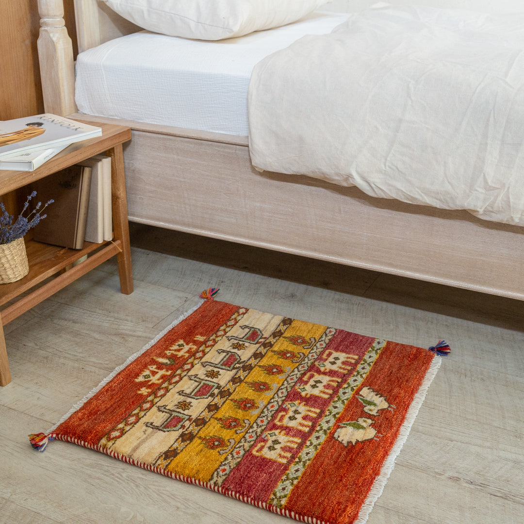 また、ギャッベは羊の毛で織られています。そのため羊毛を染めている染料の独特な匂いが生じる場合がございます。