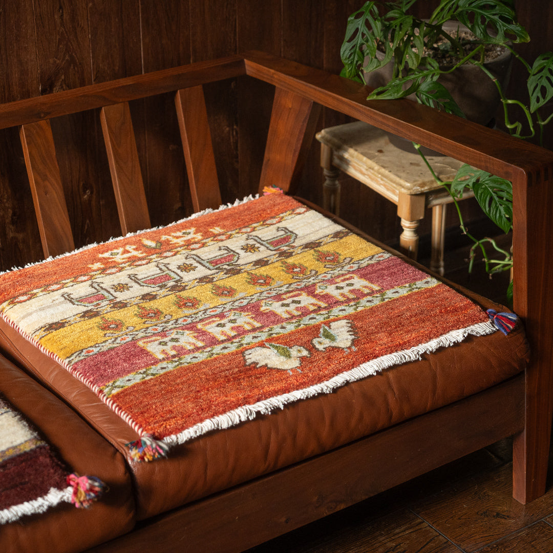 ギャッベはイランのザクロス山脈を遊牧しているカシュガイ族が手織りする、草木染の羊毛を使った毛足の長い生活に根付いた絨毯です。本商品に使用されているペルシャバリアントと呼ばれる羊毛は、過酷な環境であるザクロス山脈で生きていく為の優れた耐久性や、体温調整を上手に行うために多くの脂分を含んだ柔らかく触り心地の良い毛質を揃えています。