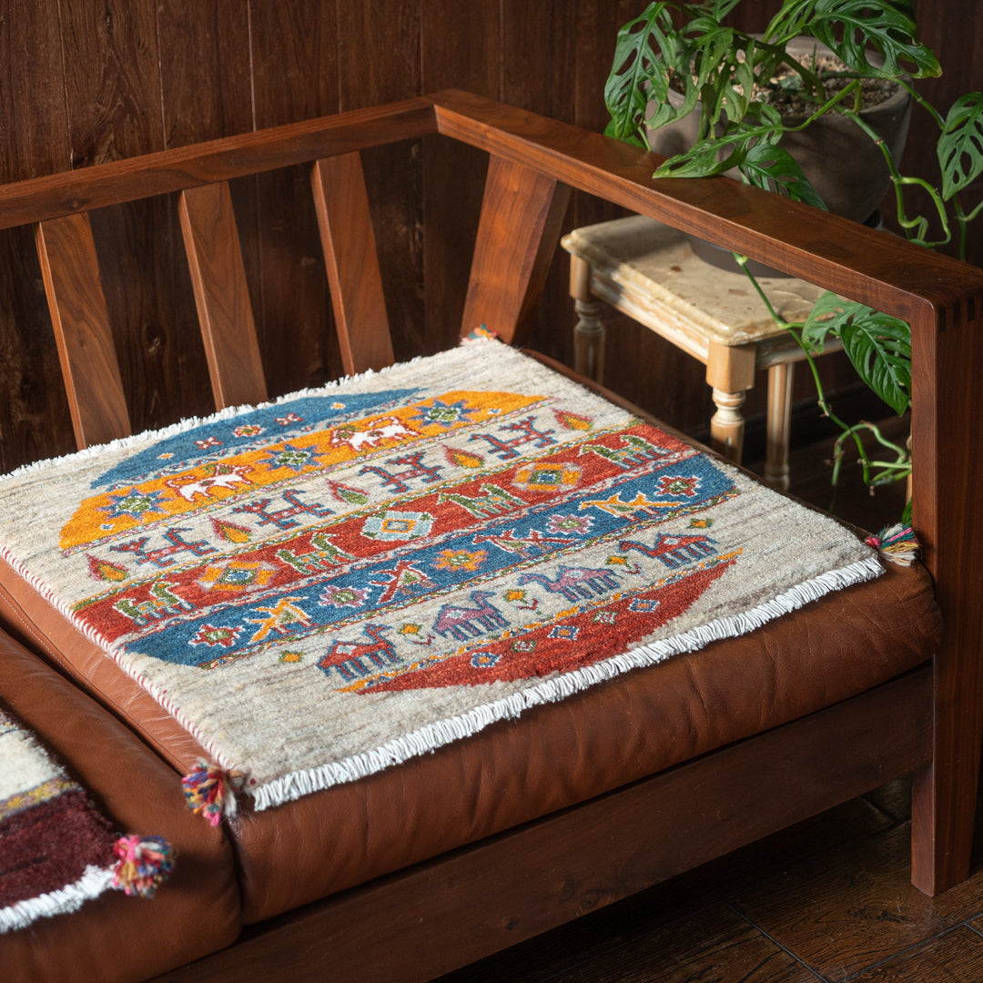ギャッベ ペルシャ手織り絨毯 玄関マット 60×61cm