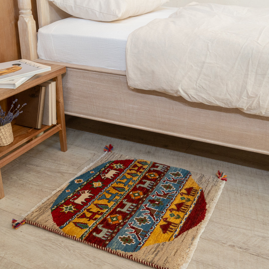 また、ギャッベは羊の毛で織られています。そのため羊毛を染めている染料の独特な匂いが生じる場合がございます。