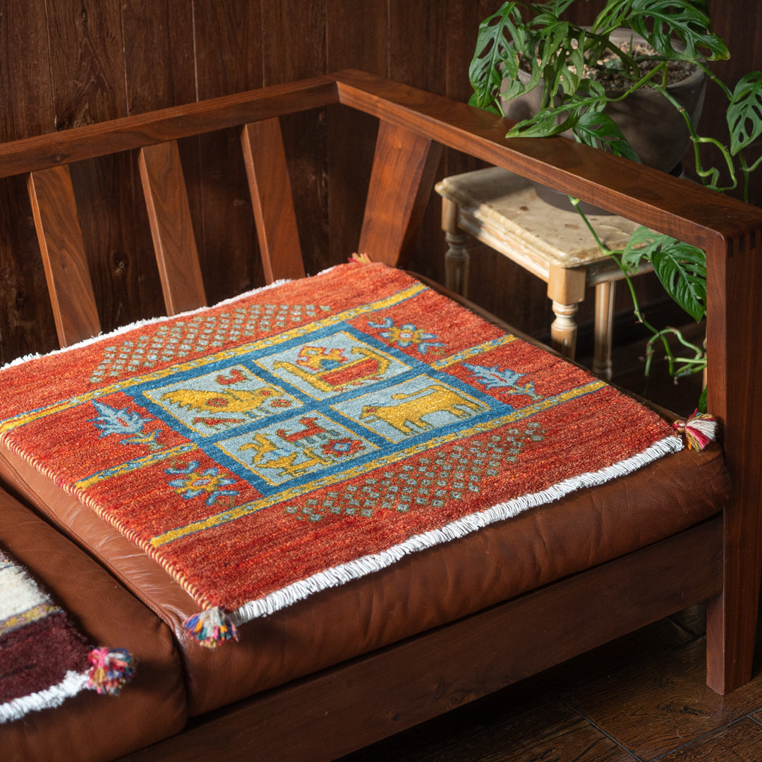 ギャッベ ペルシャ手織り絨毯 玄関マット 62×62cm