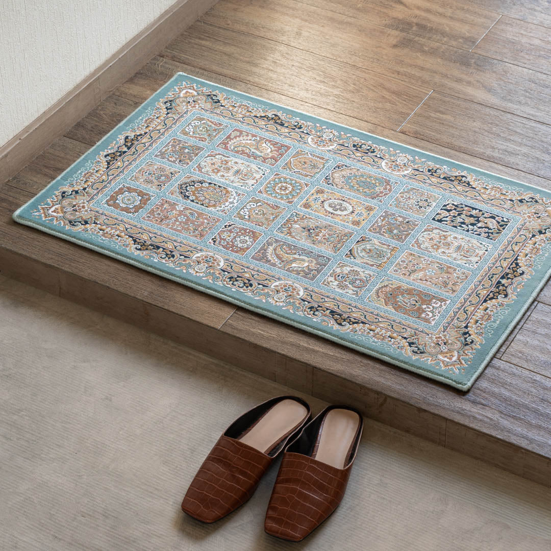 玄関以外にも、洗面台やベランダの手前、ベッドサイドなど、空いたスペースにも敷きやすいサイズ感です。