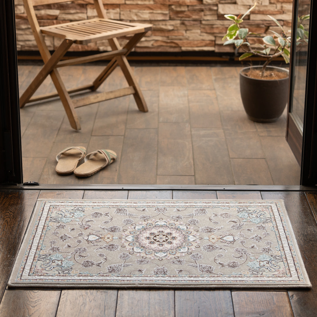 ペルシャカーペット 玄関マット ナーズ柄 グレージュ色 50×80cm