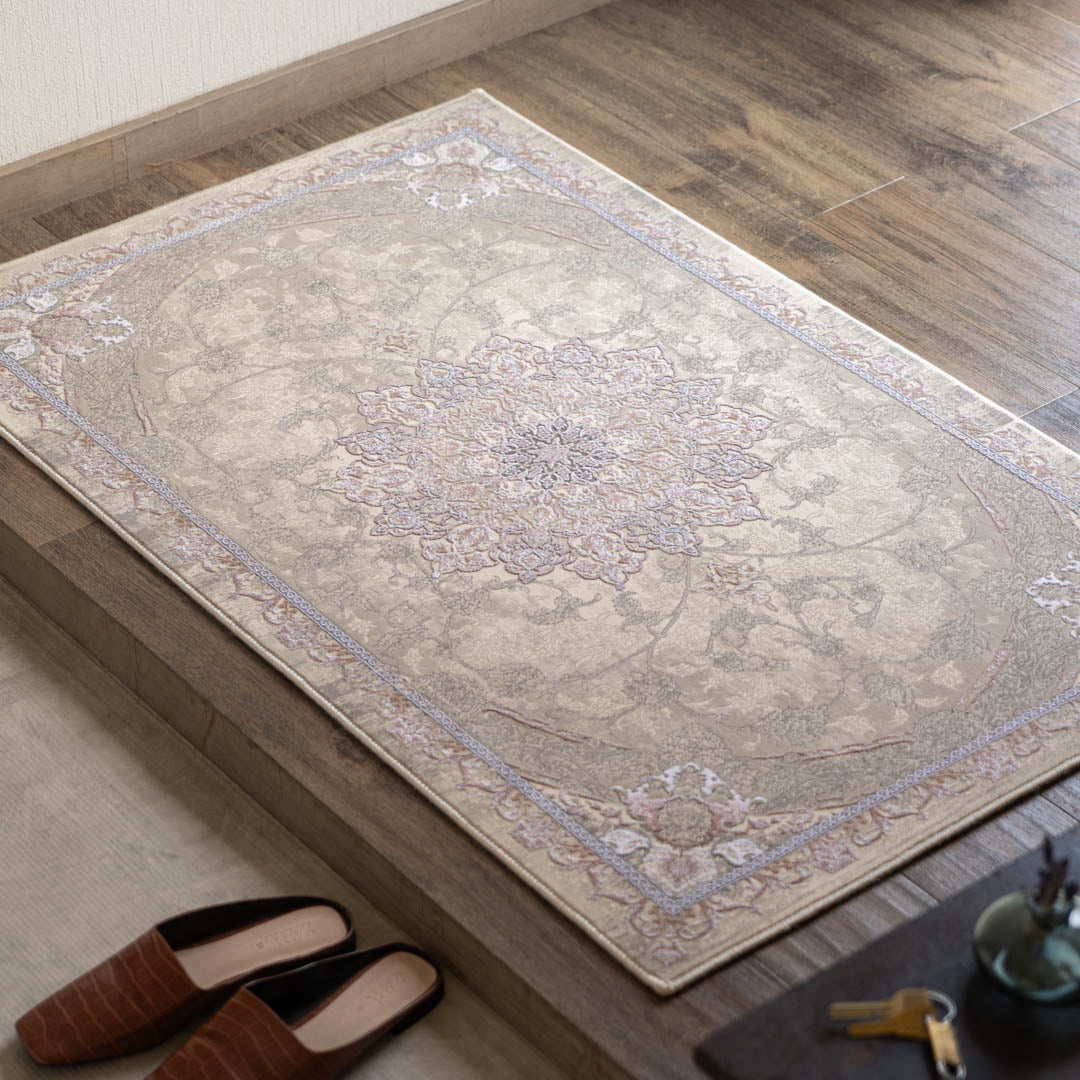 ペルシャカーペット 玄関マット ディリネ柄 ラベンダーグレー色 75×120cm