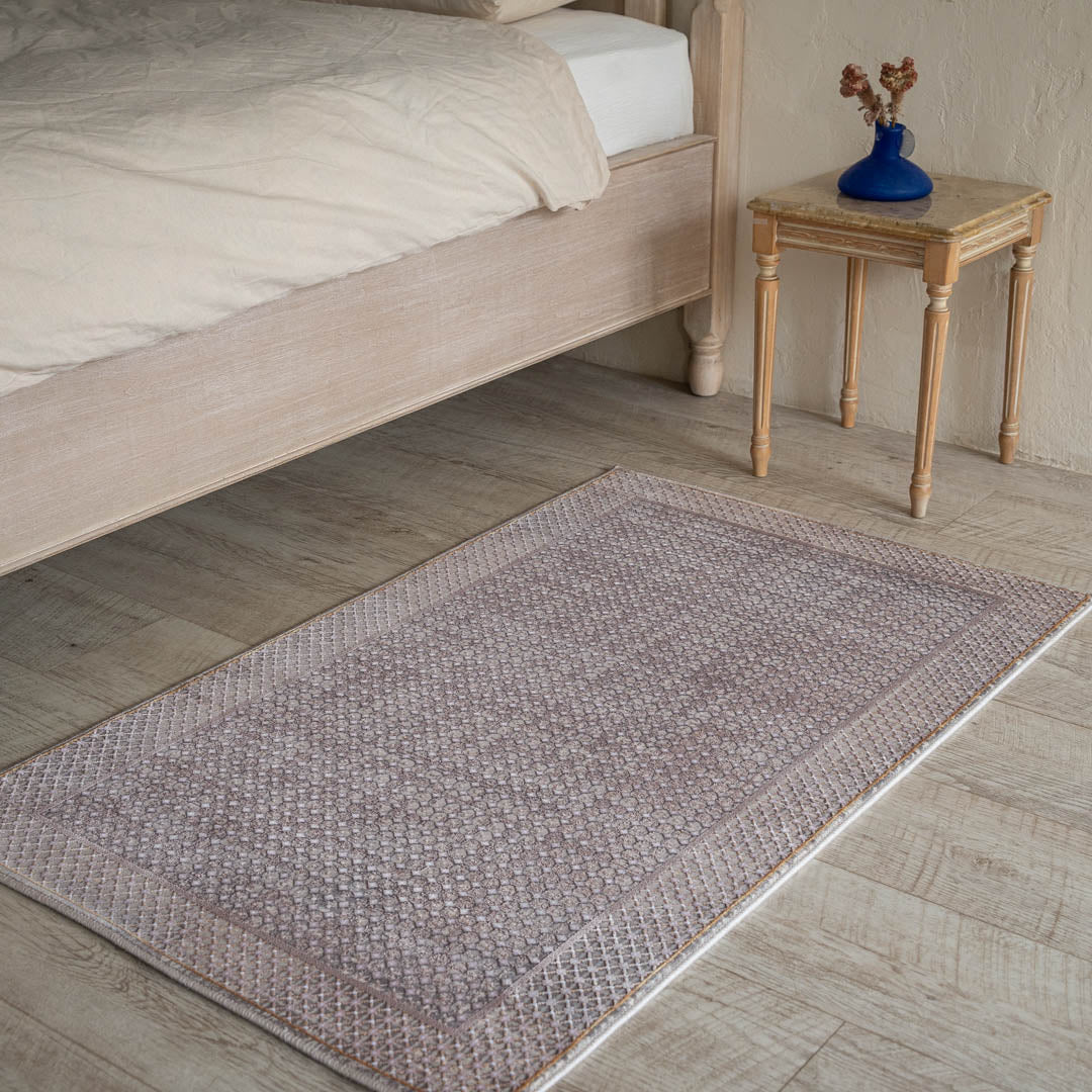 玄関以外にも、ベッドサイドやシングルソファ前など、空いたスペースにも敷きやすいサイズ感です。
