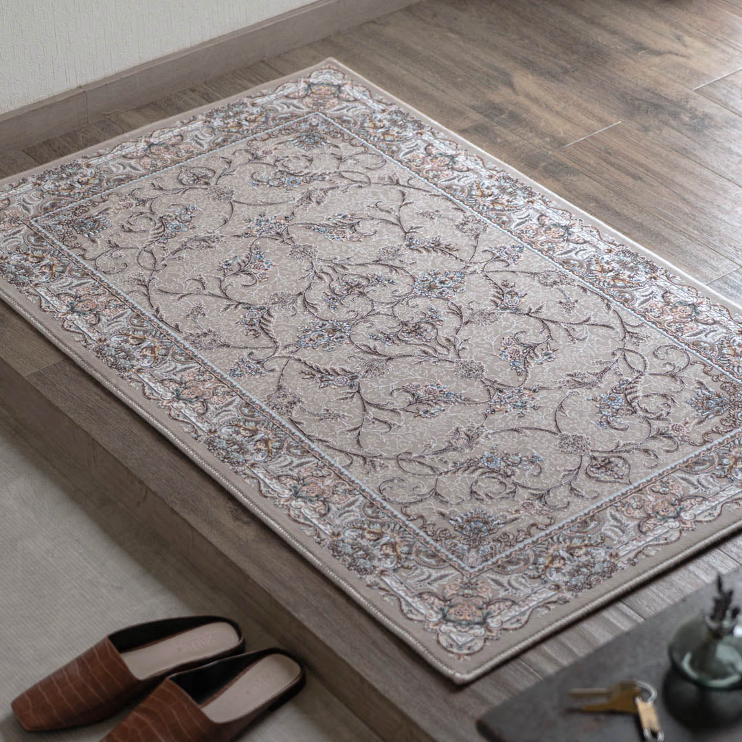 ペルシャカーペット 玄関マット ミトラ柄 グレージュ色 75×120cm