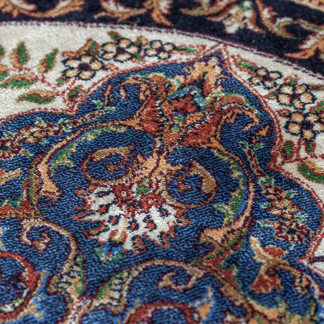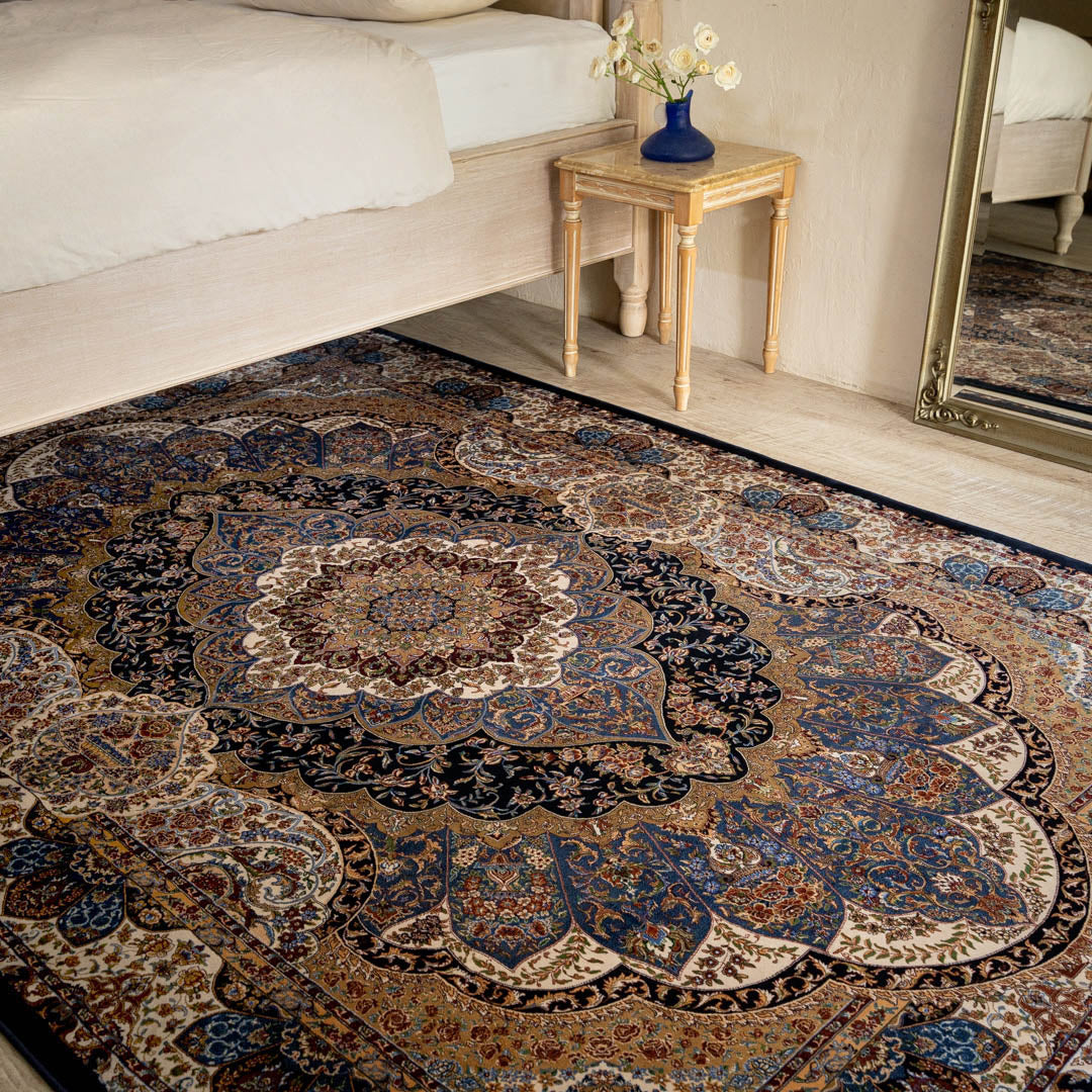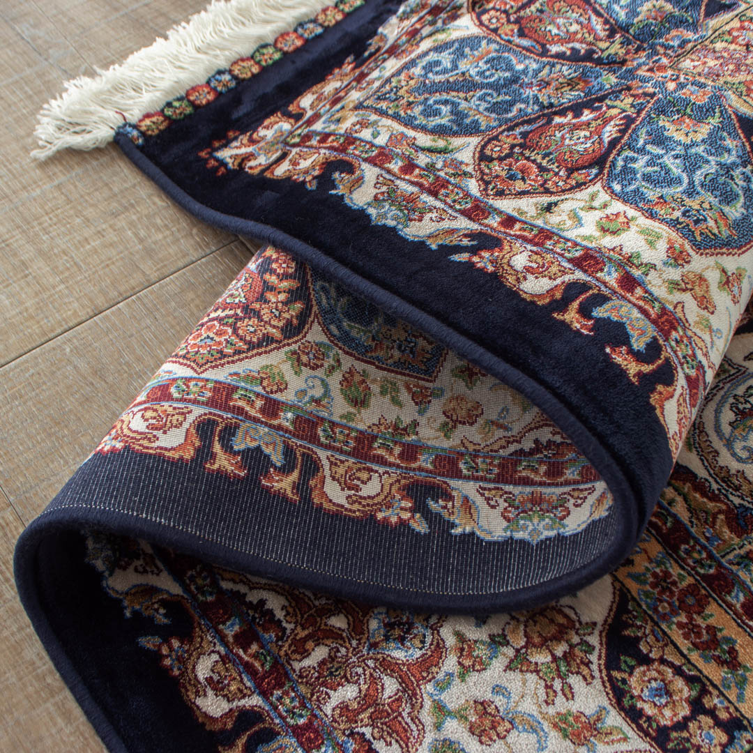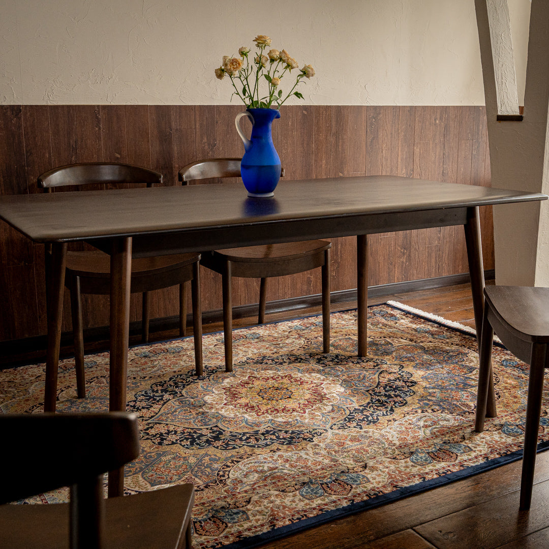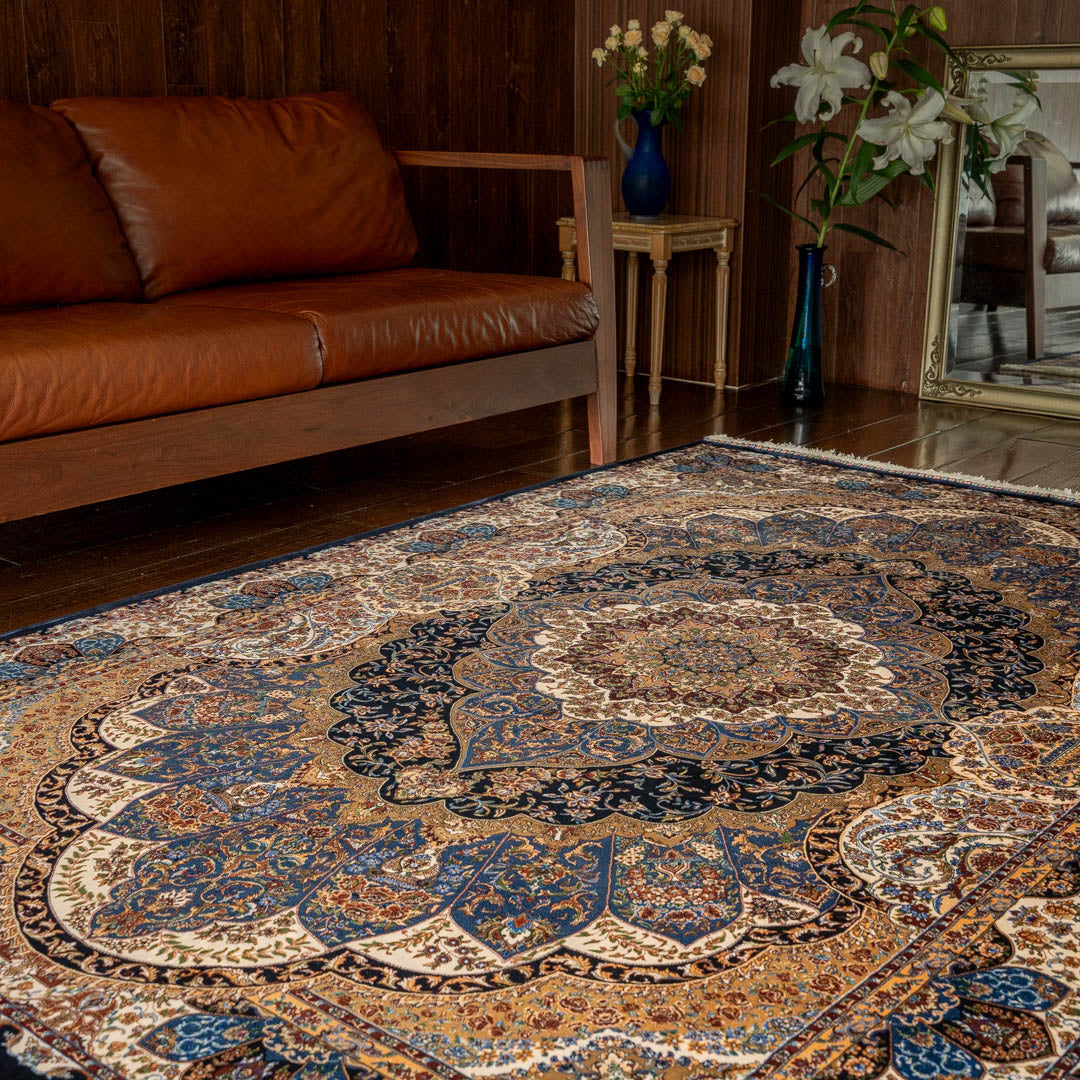 本場ペルシャ絨毯の産地イラン(ペルシャ)のデザイナーが柄を考案したこのシリーズは、ペルシャ絨毯らしい高級感はそのままに、手織りに近い技術を持つ機械で織ることによって、コストを抑えています。