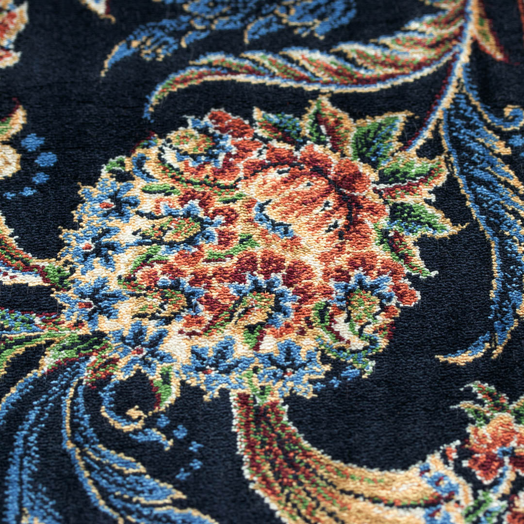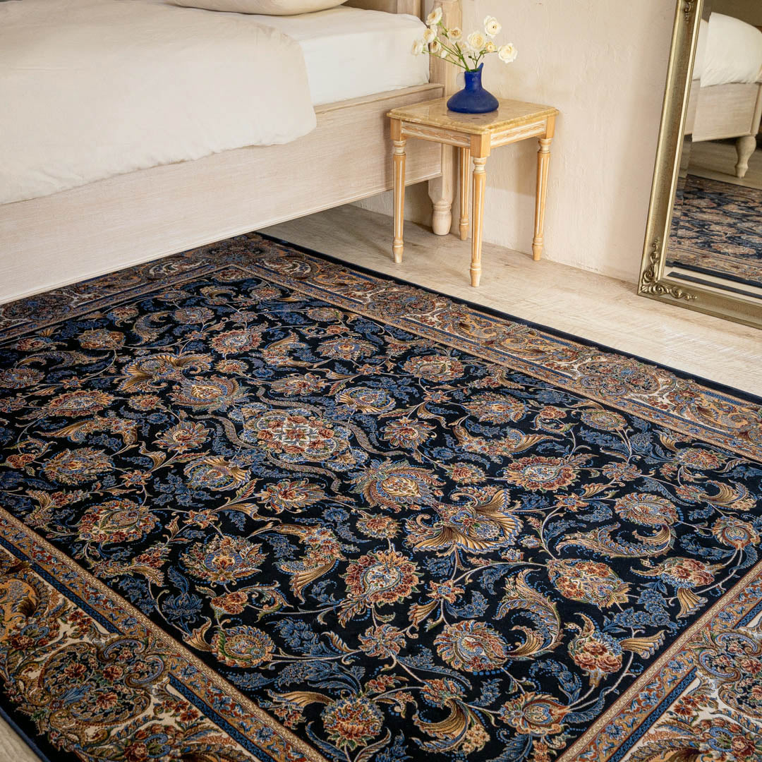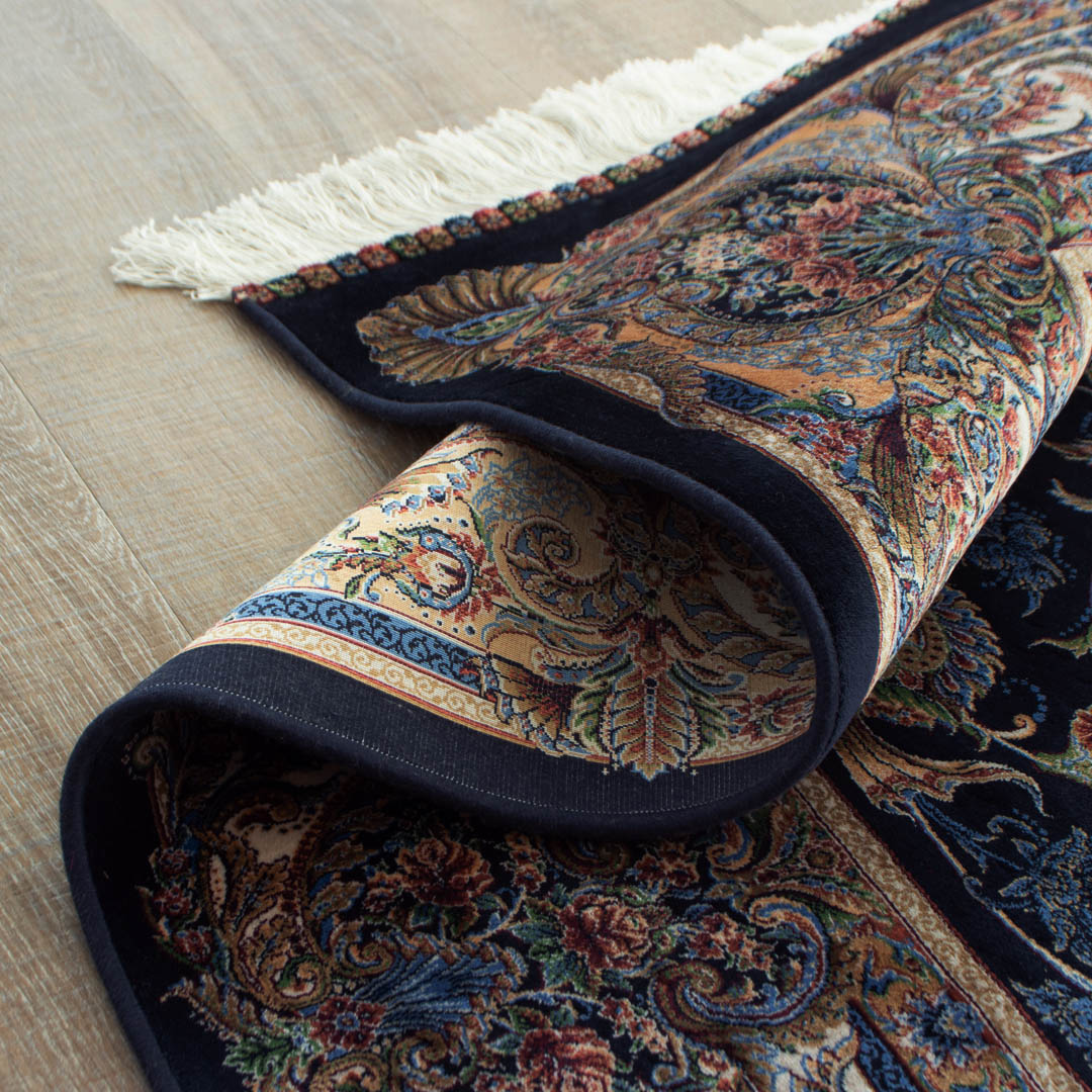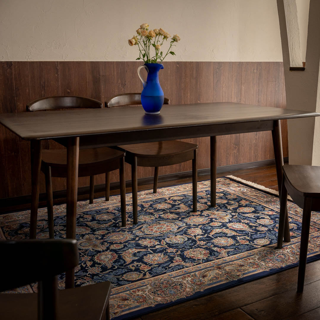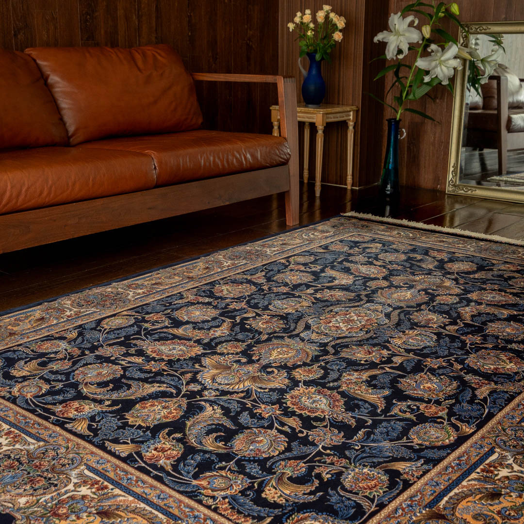 本場ペルシャ絨毯の産地イラン(ペルシャ)のデザイナーが柄を考案したこのシリーズは、ペルシャ絨毯らしい高級感はそのままに、手織りに近い技術を持つ機械で織ることによって、コストを抑えています。