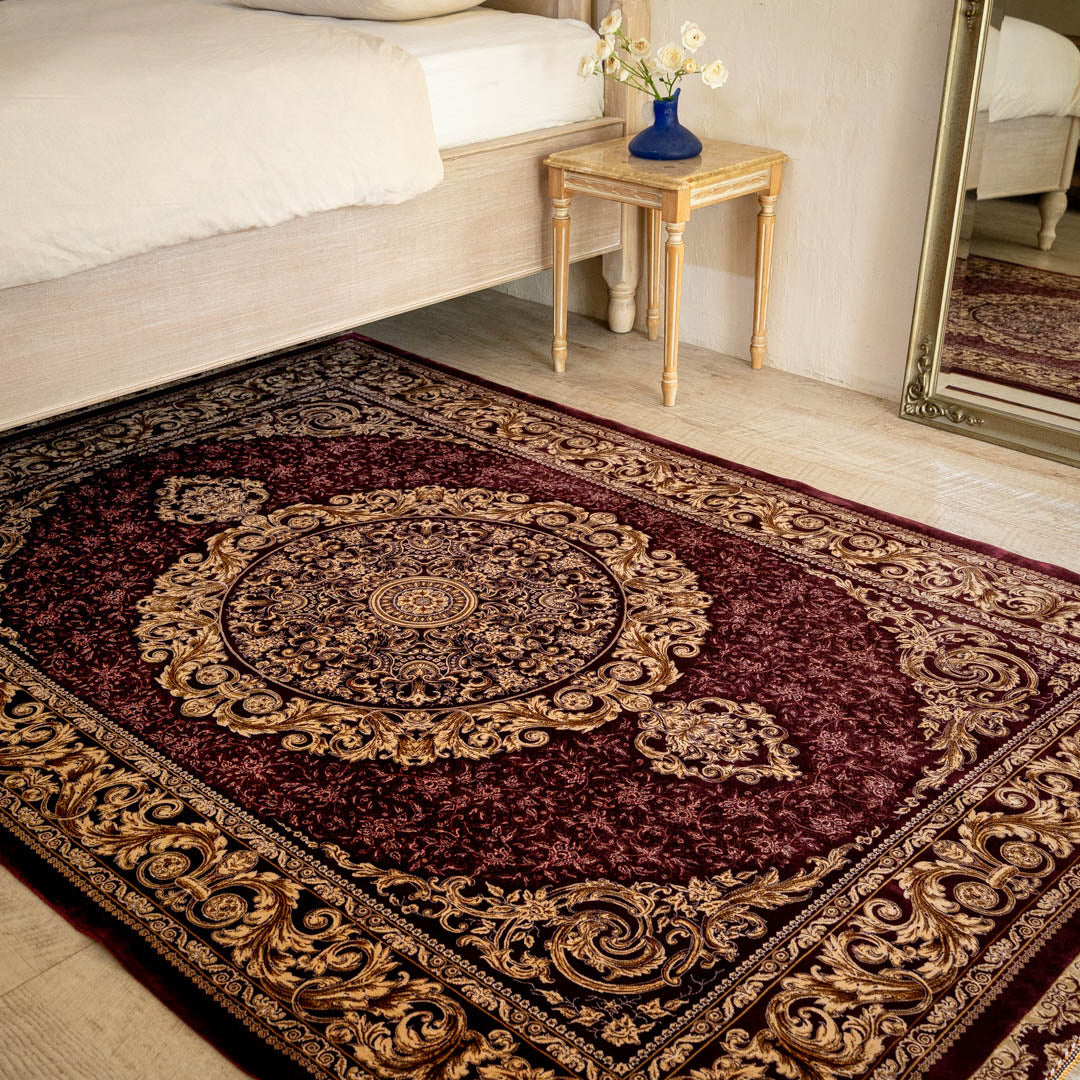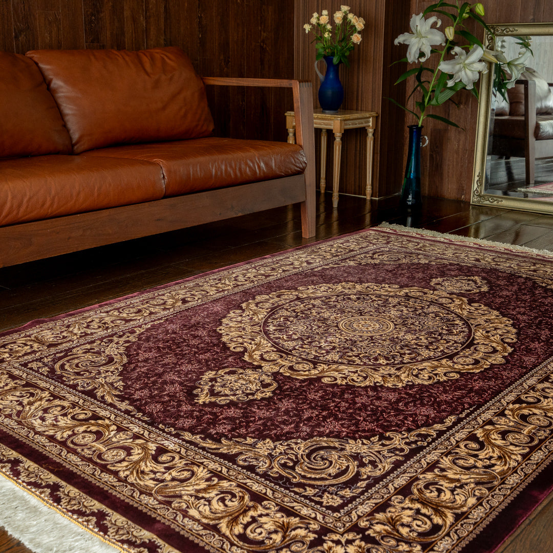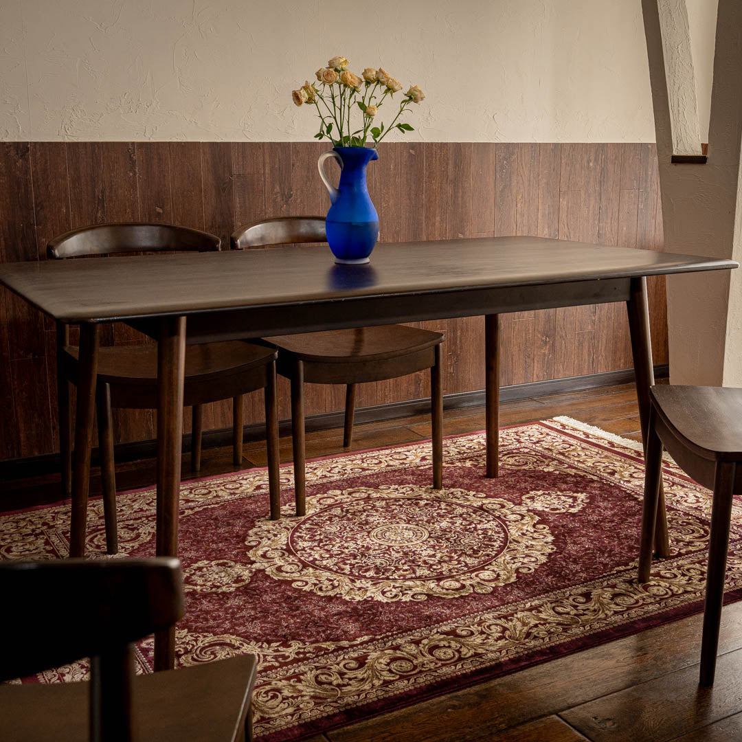 本場ペルシャ絨毯の産地イラン(ペルシャ)のデザイナーが柄を考案したこのシリーズは、ペルシャ絨毯らしい高級感はそのままに、手織りに近い技術を持つ機械で織ることによって、コストを抑えています。