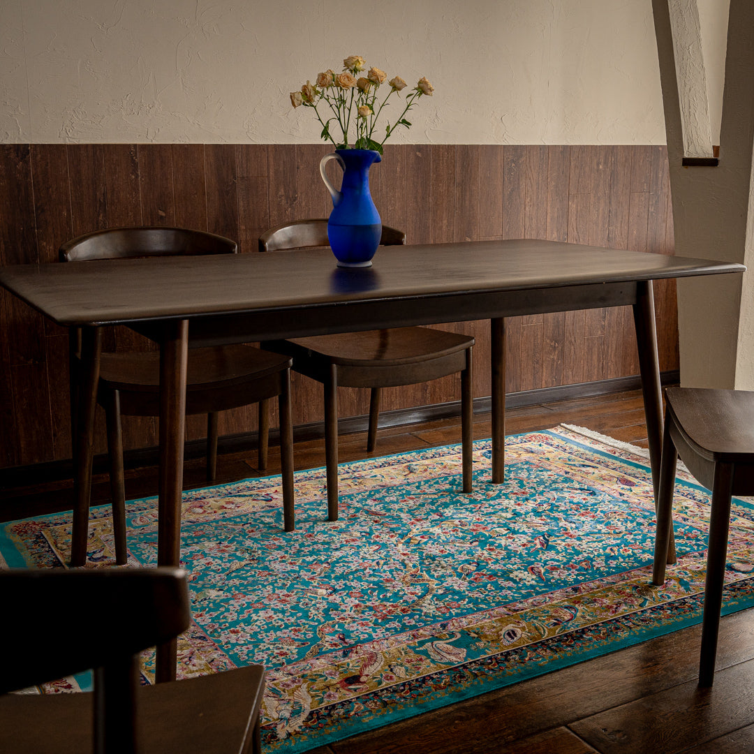 本場ペルシャ絨毯の産地イラン(ペルシャ)のデザイナーが柄を考案したこのシリーズは、ペルシャ絨毯らしい高級感はそのままに、手織りに近い技術を持つ機械で織ることによって、コストを抑えています。