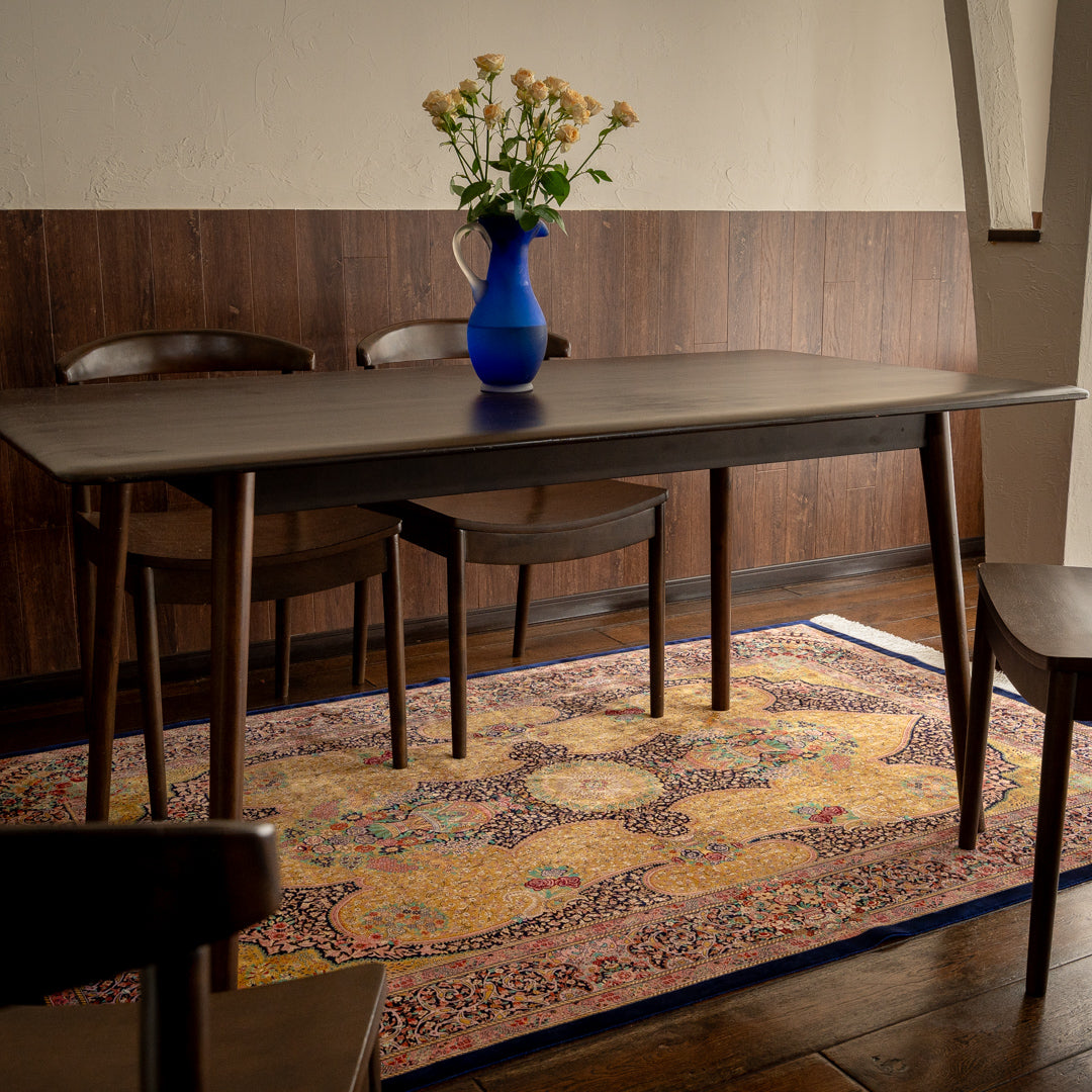 本場ペルシャ絨毯の産地イラン(ペルシャ)のデザイナーが柄を考案したこのシリーズは、ペルシャ絨毯らしい高級感はそのままに、手織りに近い技術を持つ機械で織ることによって、コストを抑えています。