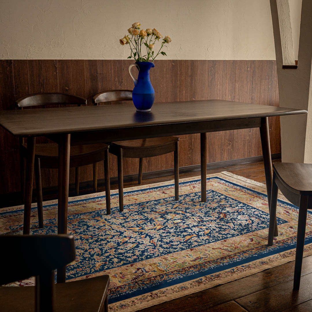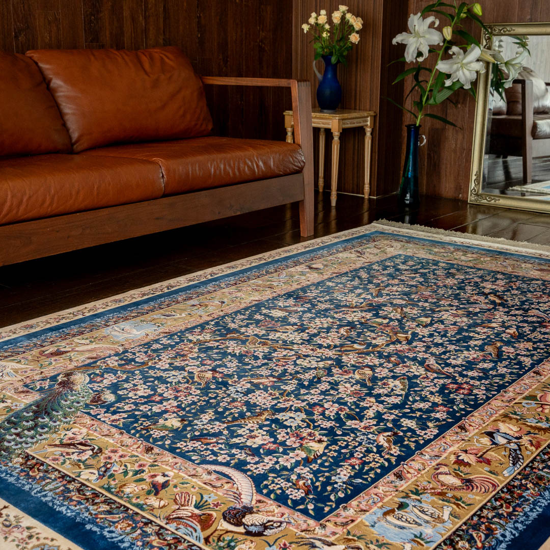本場ペルシャ絨毯の産地イラン(ペルシャ)のデザイナーが柄を考案したこのシリーズは、ペルシャ絨毯らしい高級感はそのままに、手織りに近い技術を持つ機械で織ることによって、コストを抑えています。