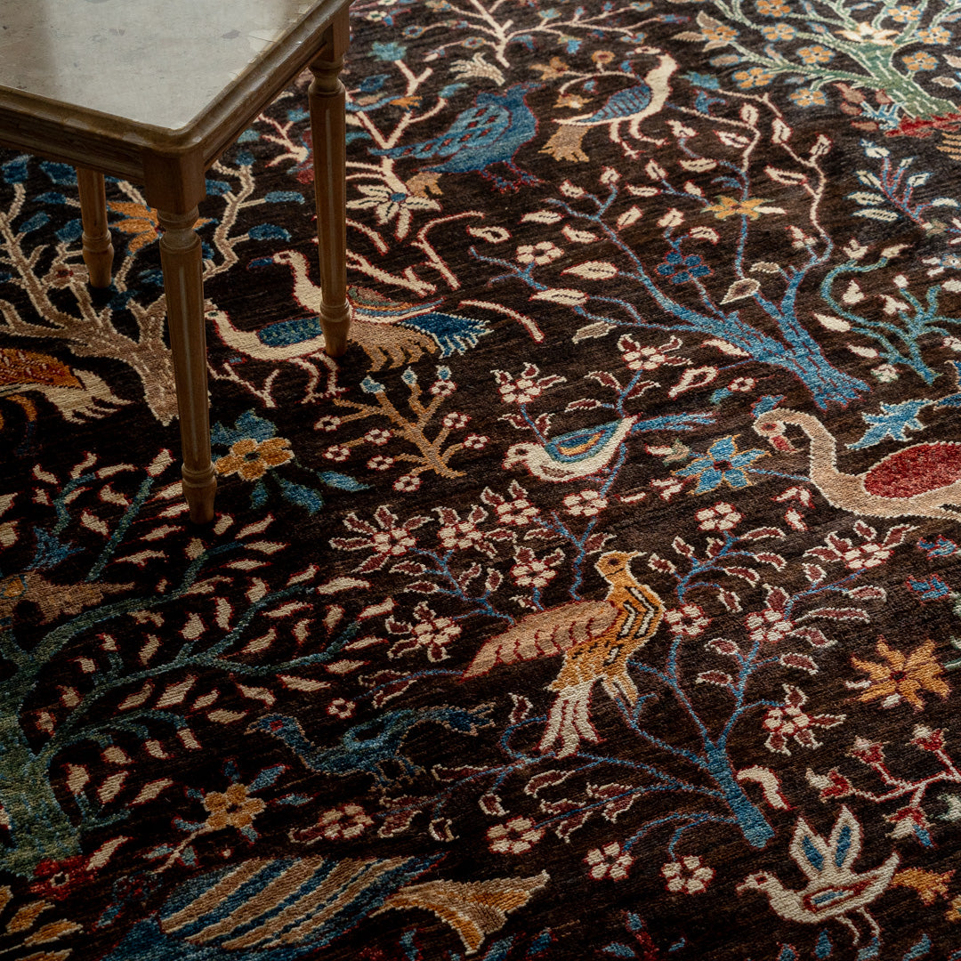 タスヴィール柄は、タブリーズで良く織られていて有名です。まるで絵画のような絨毯で、タペストリーなどにもおすすめです。お部屋のインテリアに取り入れると、一層魅力的な空間を演出できます。