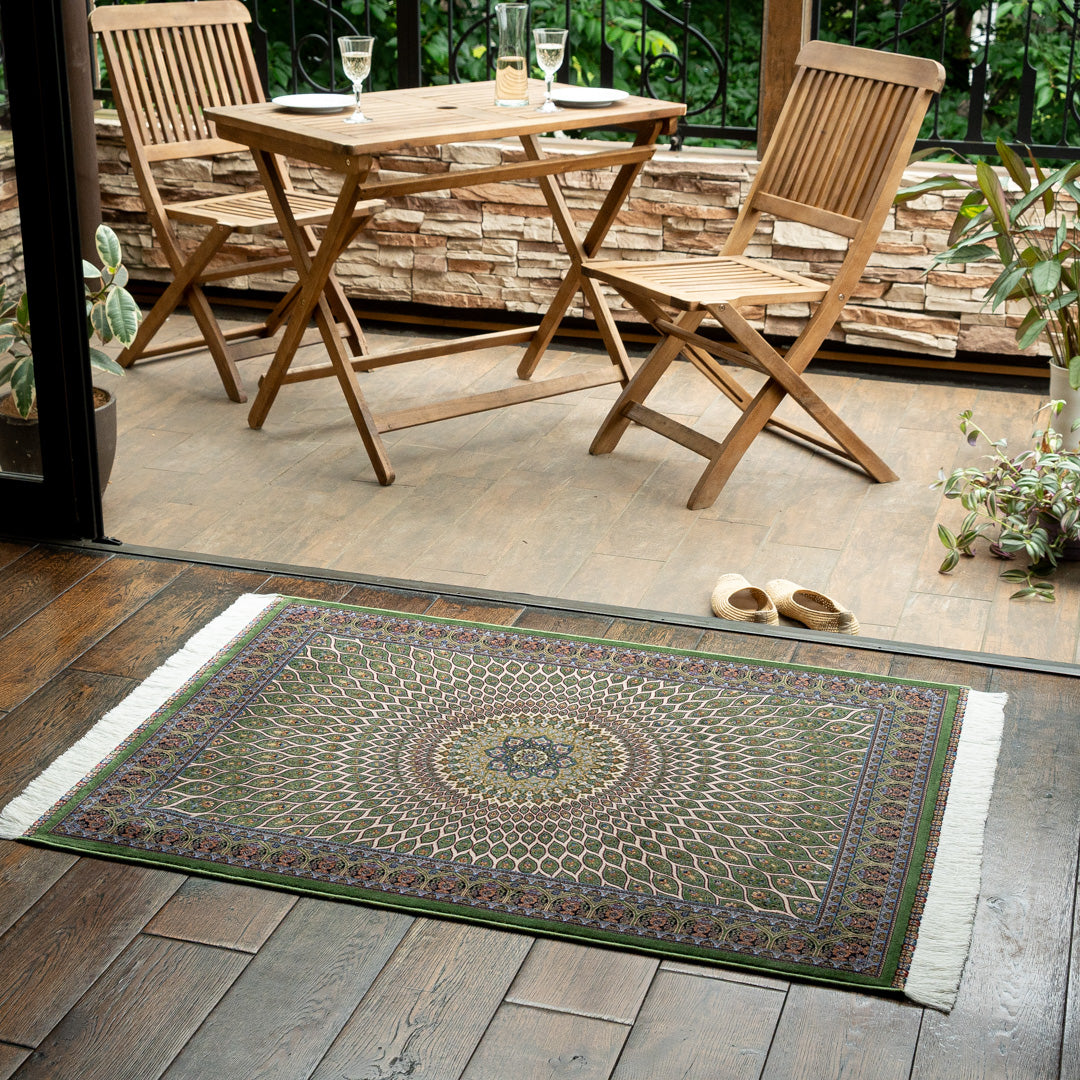本場ペルシャ絨毯の産地イラン(ペルシャ)のデザイナーが柄を考案したこのシリーズは、ペルシャ絨毯らしい高級感はそのままに、手織りに近い技術を持つ機械で織ることによって、コストを抑えています。