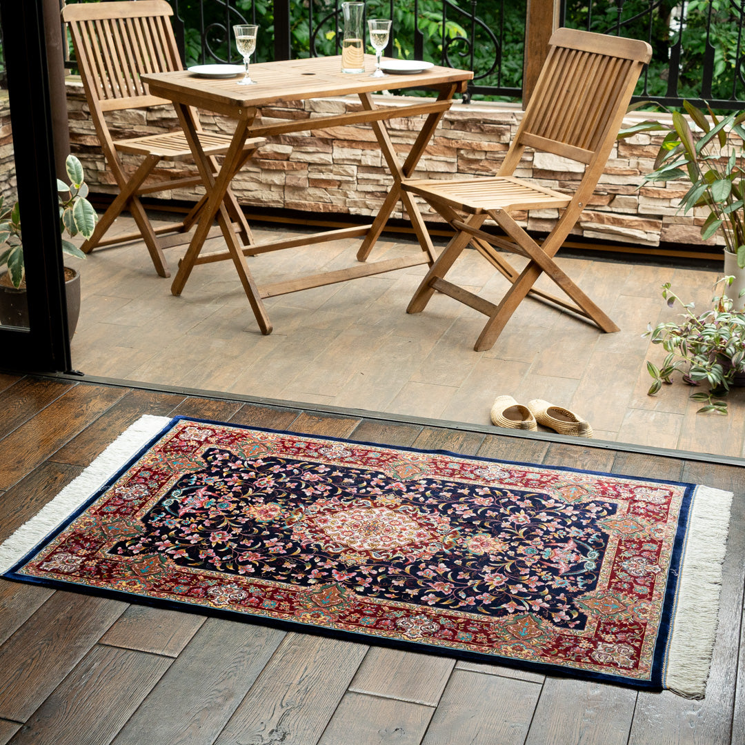 ペルシャ絨毯(機械&手織り) バンブーシルク 約80×120cm 玄関マットサイズ