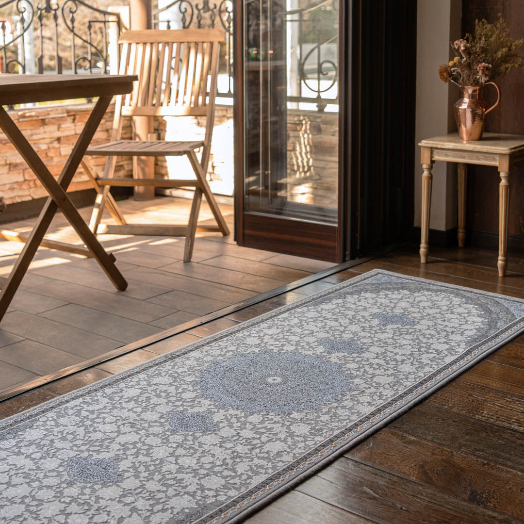 ご自宅の廊下やベッドサイド、キッチンなどでお使いいただけるロングサイズのランナー絨毯です。