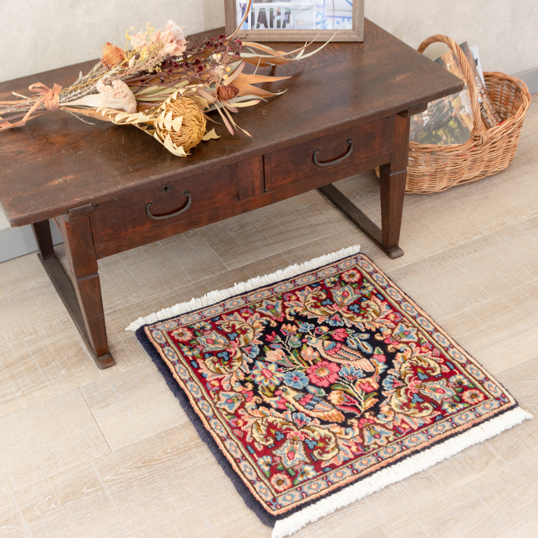 ペルシャ手織り絨毯 ウール 玄関マット ケルマン 45×45.5cm OUTLET