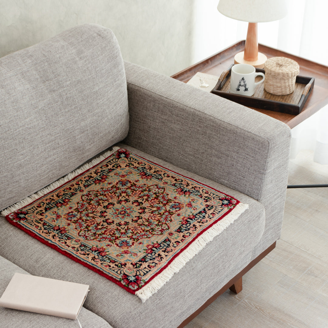 ペルシャ手織り絨毯 ウール 玄関マット ケルマン 43.5×43cm OUTLET