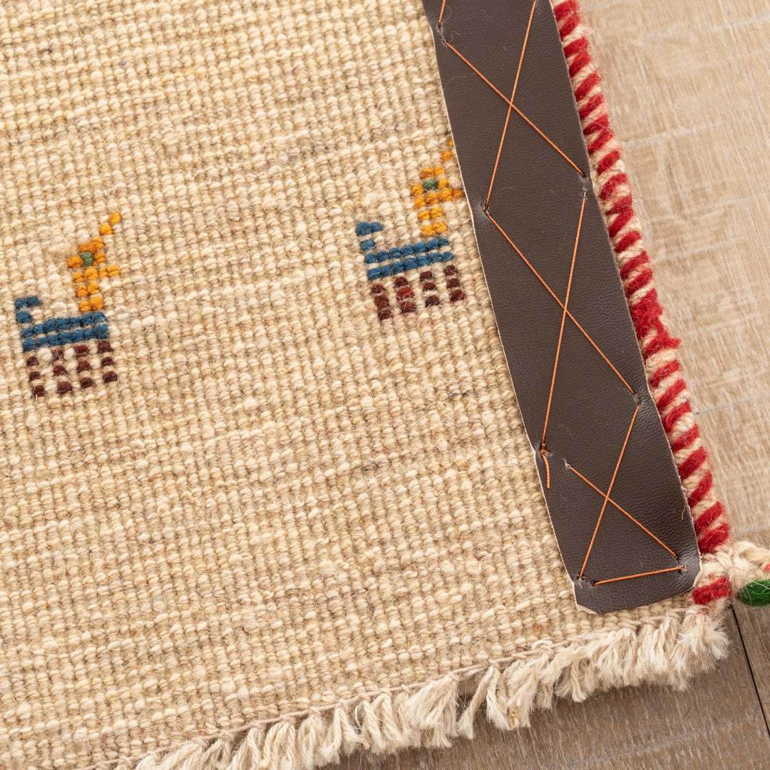 また、ギャッベは羊の毛で織られています。そのため羊毛を染めている染料の独特な匂いが生じる場合がございます。