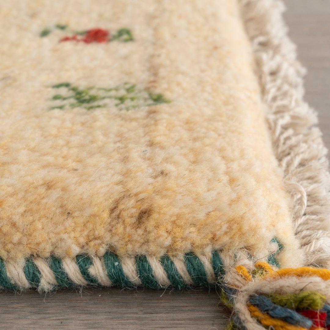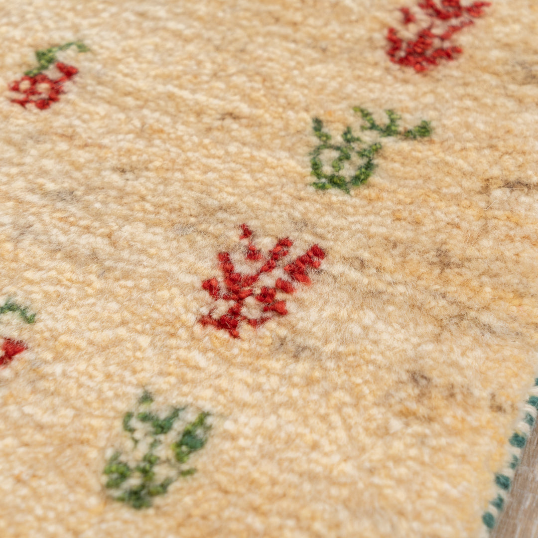 ギャッベはイランのザクロス山脈を遊牧しているカシュガイ族が手織りする、草木染の羊毛を使った毛足の長い生活に根付いた絨毯です。本商品に使用されているペルシャバリアントと呼ばれる羊毛は、過酷な環境であるザクロス山脈で生きていく為の優れた耐久性や、体温調整を上手に行うために多くの脂分を含んだ柔らかく触り心地の良い毛質を揃えています。