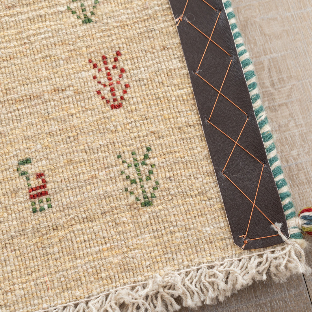また、ギャッベは羊の毛で織られています。そのため羊毛を染めている染料の独特な匂いが生じる場合がございます。