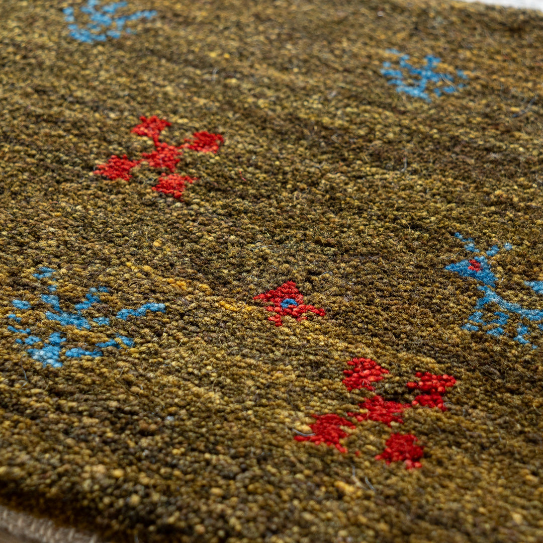 ギャッベはイランのザクロス山脈を遊牧しているカシュガイ族が手織りする、草木染の羊毛を使った毛足の長い生活に根付いた絨毯です。本商品に使用されているペルシャバリアントと呼ばれる羊毛は、過酷な環境であるザクロス山脈で生きていく為の優れた耐久性や、体温調整を上手に行うために多くの脂分を含んだ柔らかく触り心地の良い毛質を揃えています。