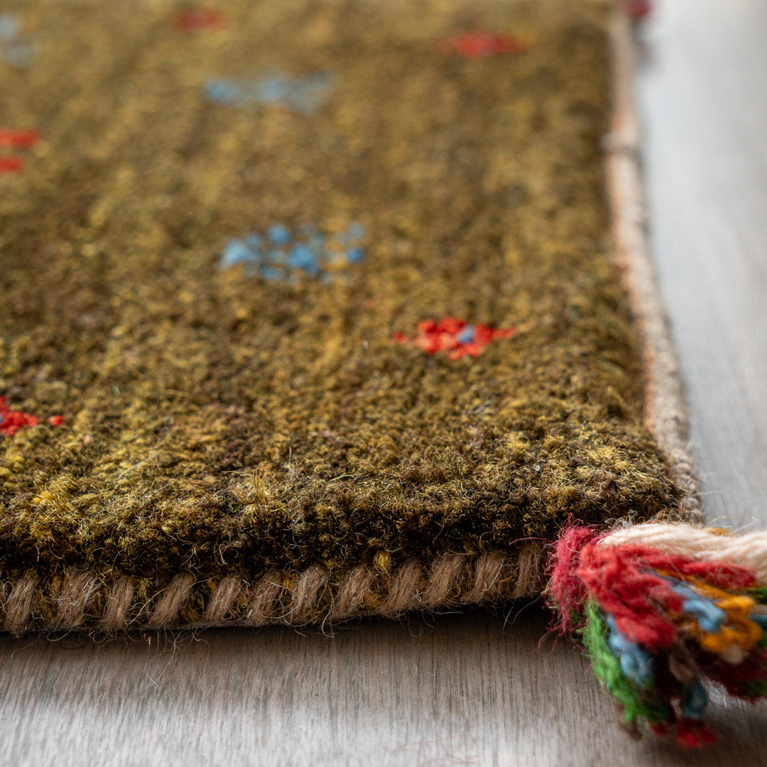 また、ギャッベは羊の毛で織られています。そのため羊毛を染めている染料の独特な匂いが生じる場合がございます。