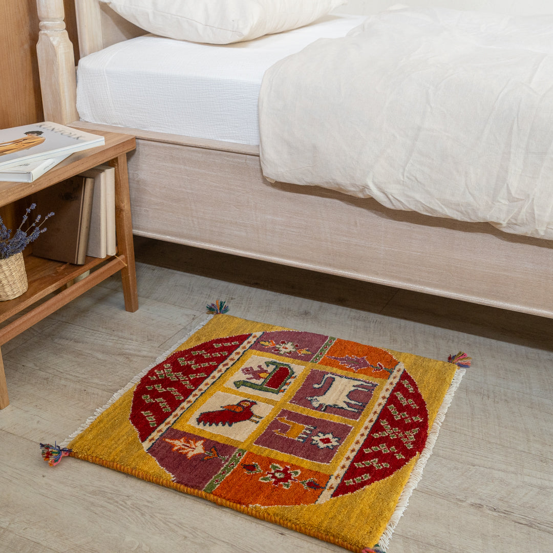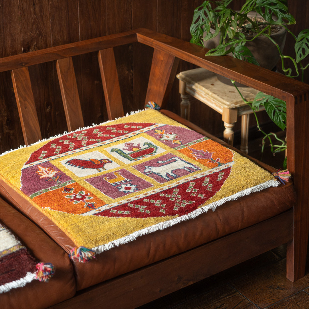 ギャッベ ペルシャ手織り絨毯 玄関マット 60×60cm