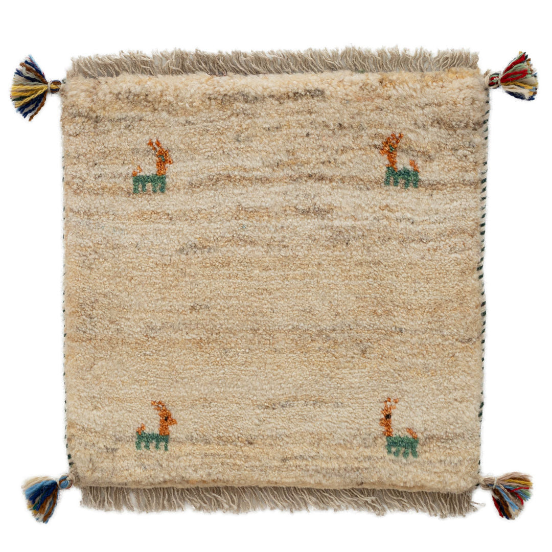 ギャッベ ペルシャ手織り絨毯 座布団 44×43cm