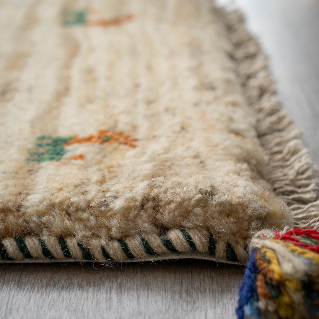 また、ギャッベは羊の毛で織られています。そのため羊毛を染めている染料の独特な匂いが生じる場合がございます。