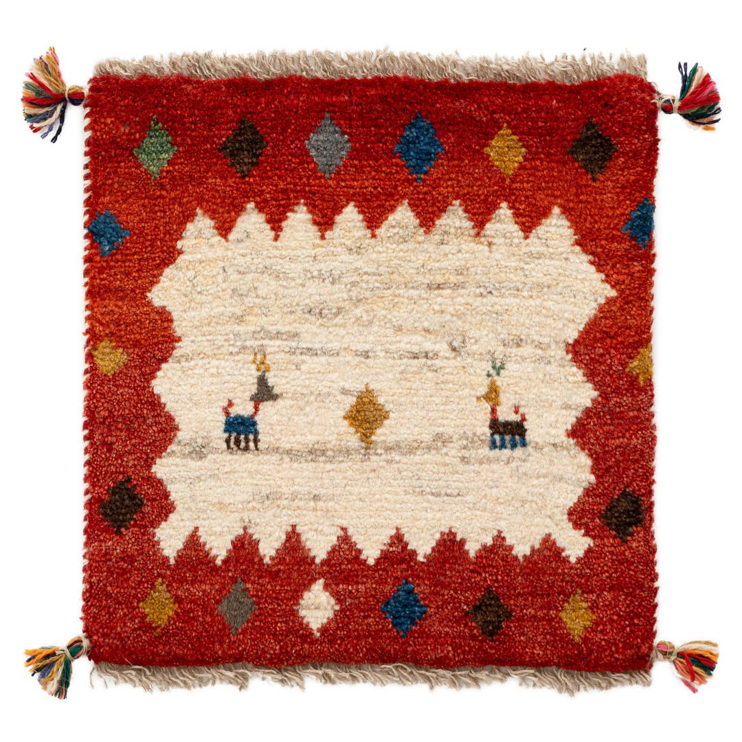 ギャッベ ペルシャ手織り絨毯 座布団 42×43cm