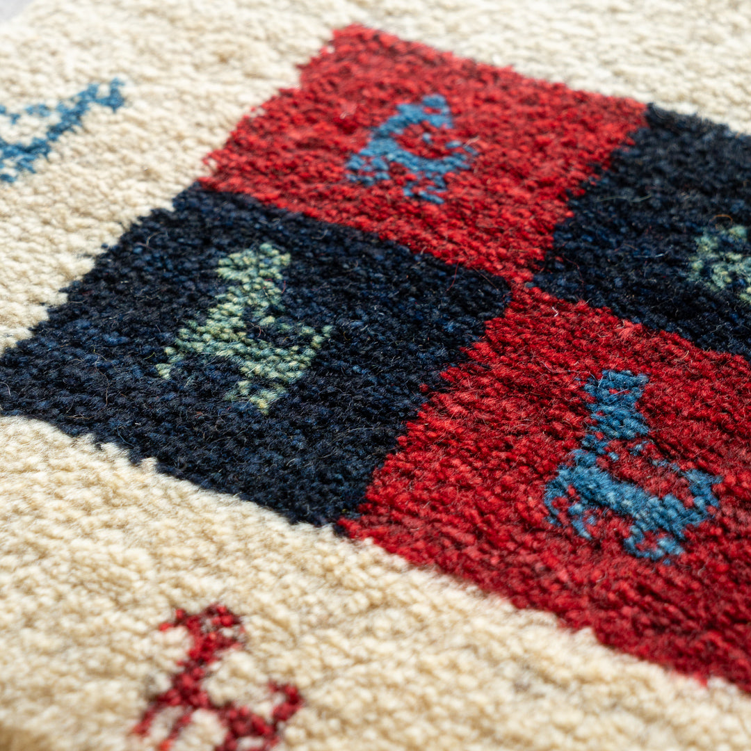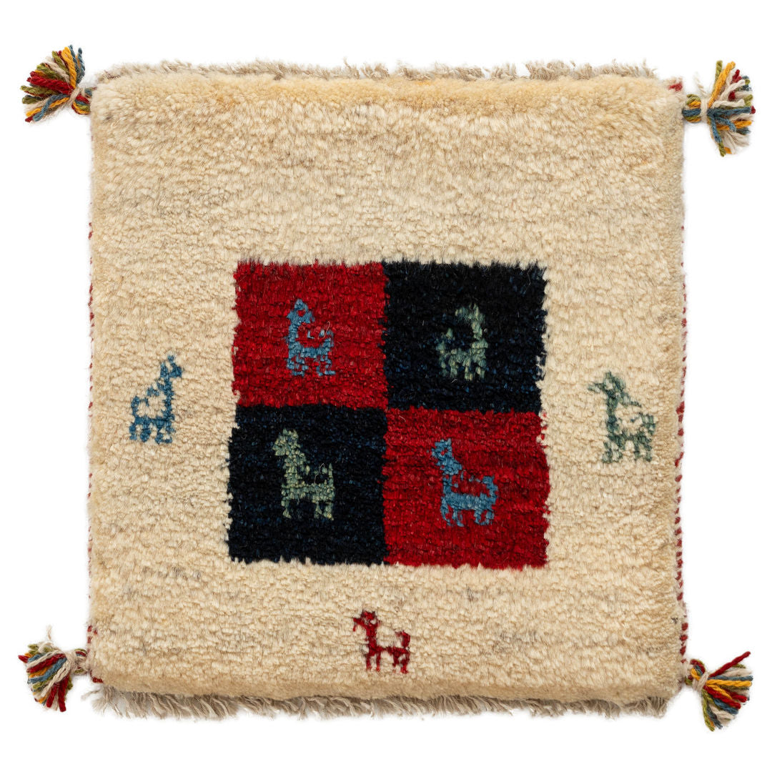 ギャッベ ペルシャ手織り絨毯 座布団 41×42cm