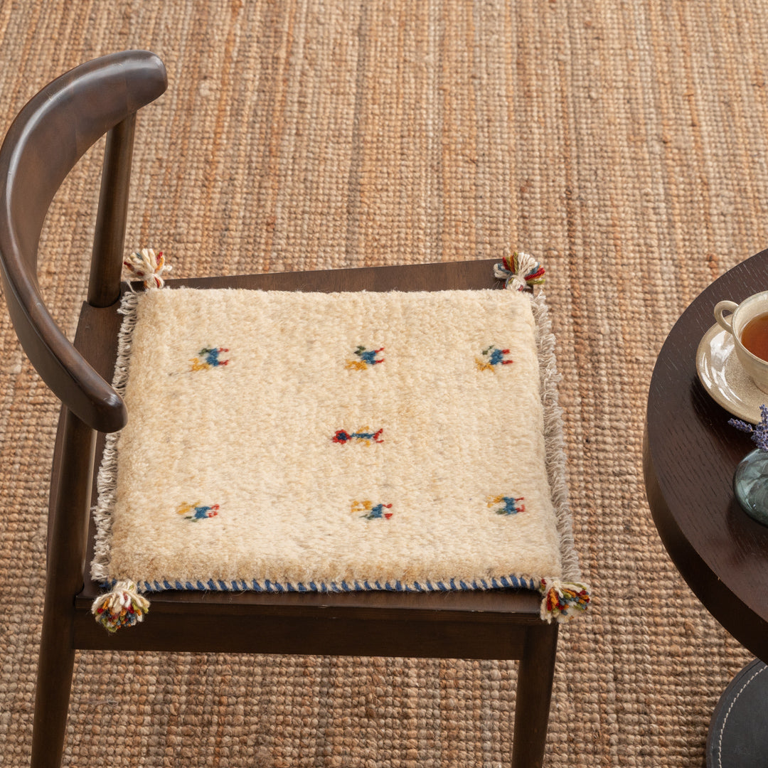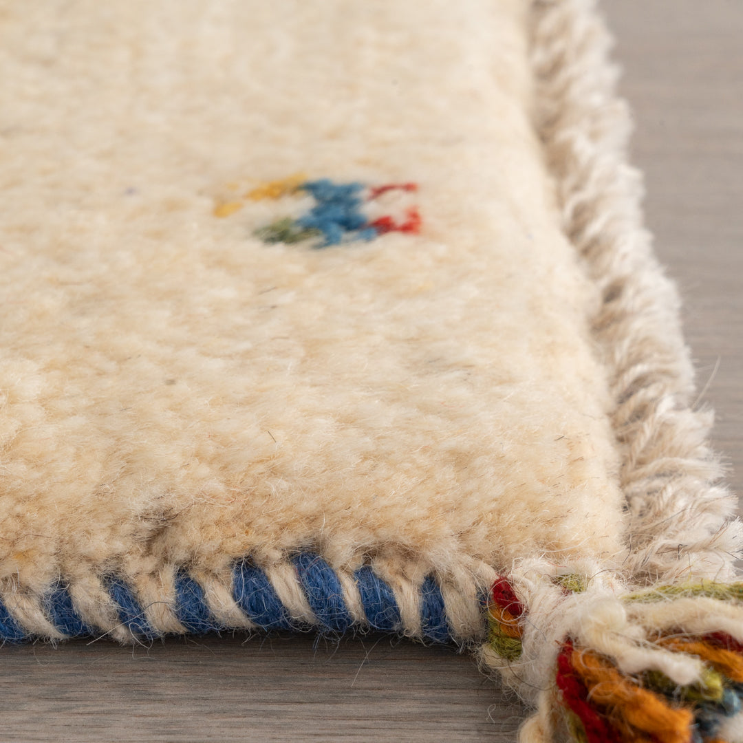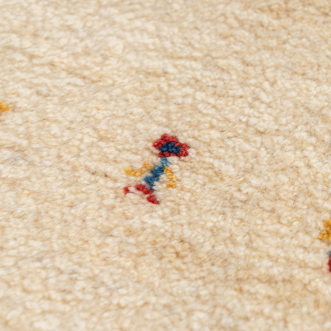 ギャッベはイランのザクロス山脈を遊牧しているカシュガイ族が手織りする、草木染の羊毛を使った毛足の長い生活に根付いた絨毯です。本商品に使用されているペルシャバリアントと呼ばれる羊毛は、過酷な環境であるザクロス山脈で生きていく為の優れた耐久性や、体温調整を上手に行うために多くの脂分を含んだ柔らかく触り心地の良い毛質を揃えています。