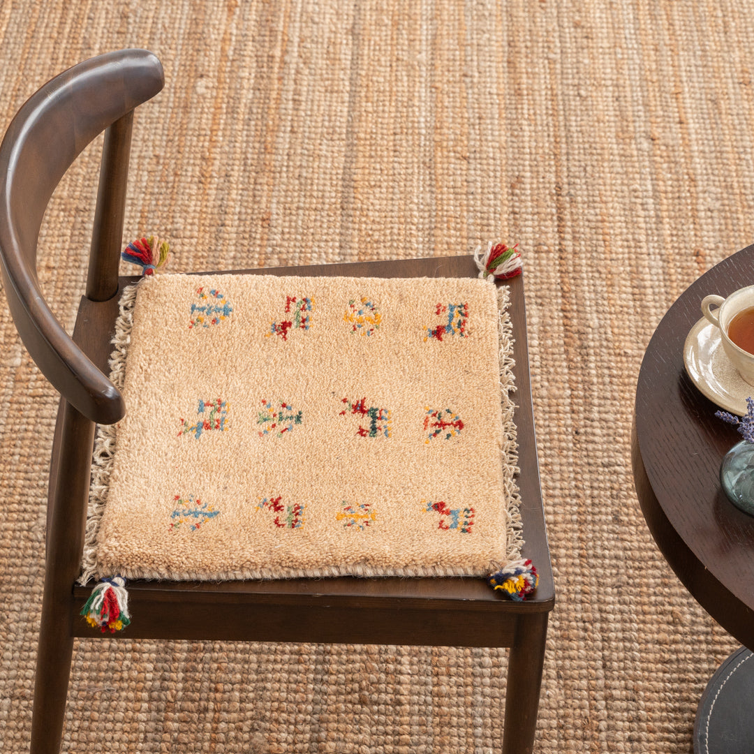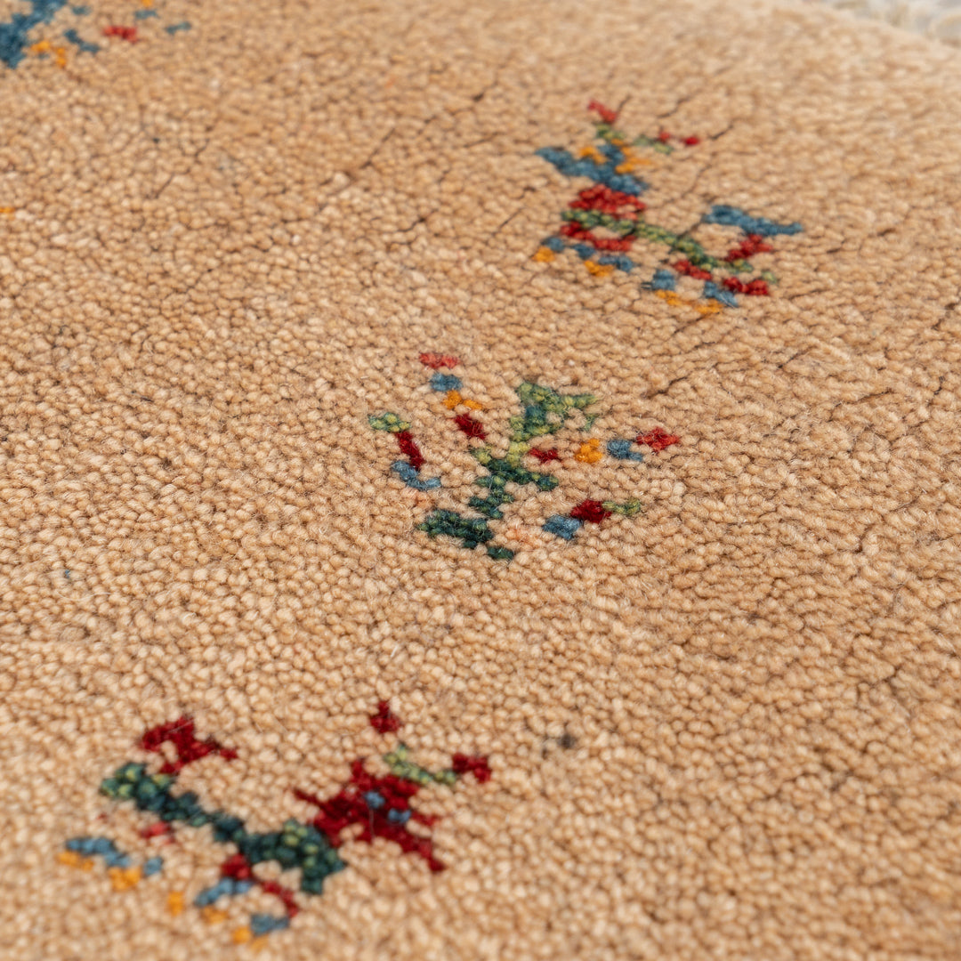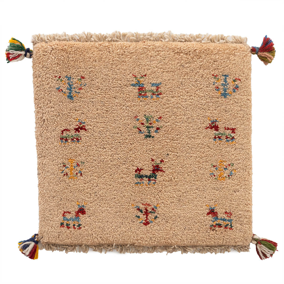 ギャッベはイランのザクロス山脈を遊牧しているカシュガイ族が手織りする、草木染の羊毛を使った毛足の長い生活に根付いた絨毯です。本商品に使用されているペルシャバリアントと呼ばれる羊毛は、過酷な環境であるザクロス山脈で生きていく為の優れた耐久性や、体温調整を上手に行うために多くの脂分を含んだ柔らかく触り心地の良い毛質を揃えています。
