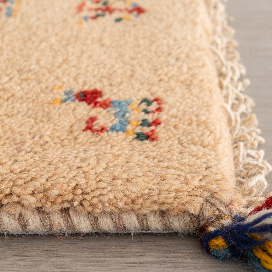 また、ギャッベは羊の毛で織られています。そのため羊毛を染めている染料の独特な匂いが生じる場合がございます。