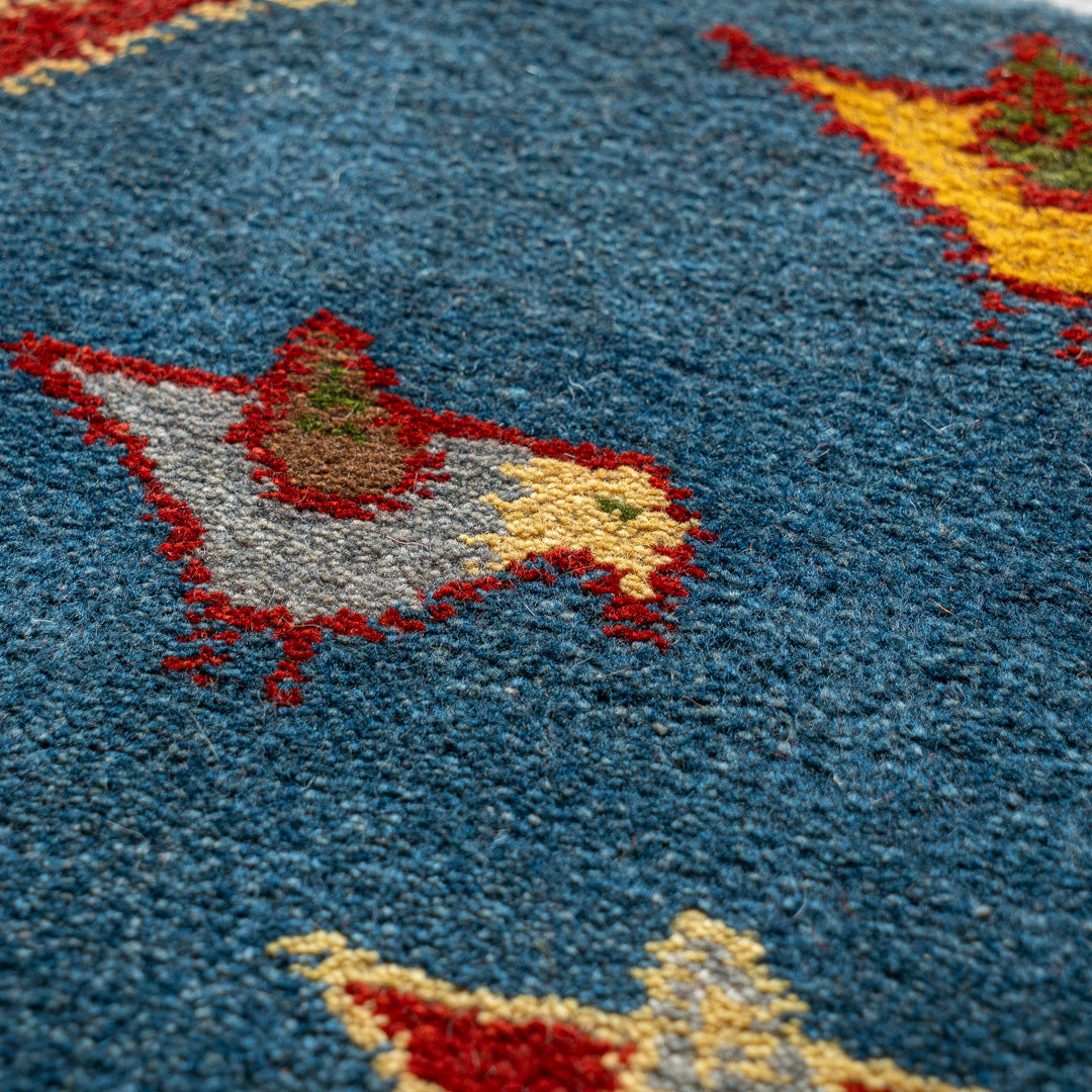 その羊毛を天然染料で染めて、イランの遊牧民が1本1本丁寧に手で織ったギャッベはフカフカで気持ち良い肌ざわりなのが特徴です。