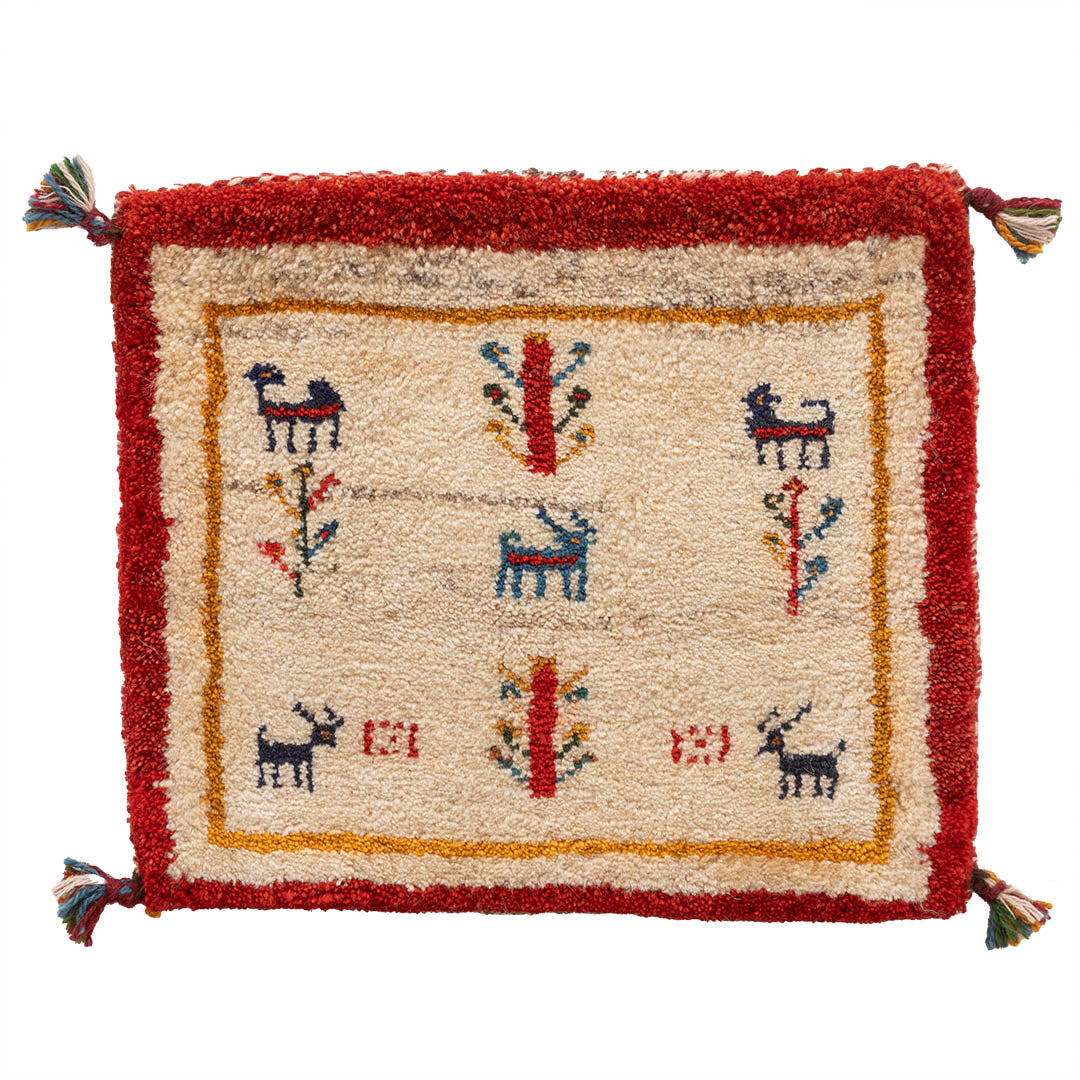 ギャッベ ペルシャ手織り絨毯 座布団 47×41cm