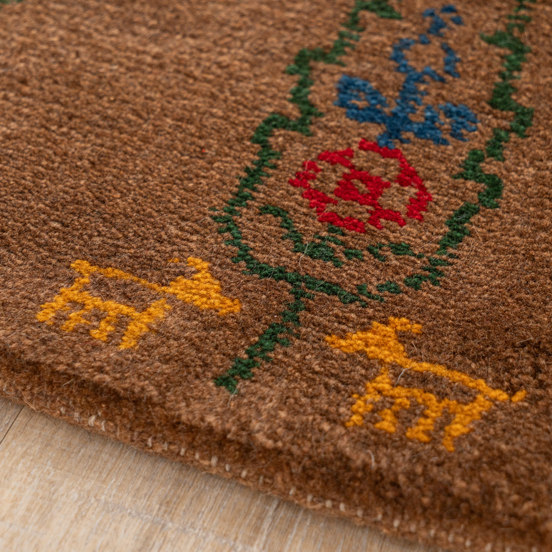 ギャッベはイランのザクロス山脈を遊牧しているカシュガイ族が手織りする、草木染の羊毛を使った毛足の長い生活に根付いた絨毯です。本商品に使用されているペルシャバリアントと呼ばれる羊毛は、過酷な環境であるザクロス山脈で生きていく為の優れた耐久性や、体温調整を上手に行うために多くの脂分を含んだ柔らかく触り心地の良い毛質を揃えています。