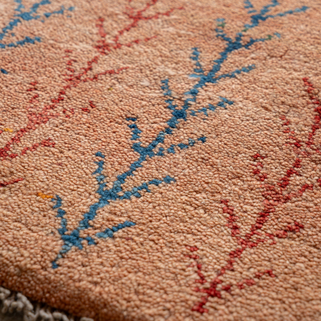 その羊毛を天然染料で染めて、イランの遊牧民が1本1本丁寧に手で織ったギャッベはフカフカで気持ち良い肌ざわりなのが特徴です。