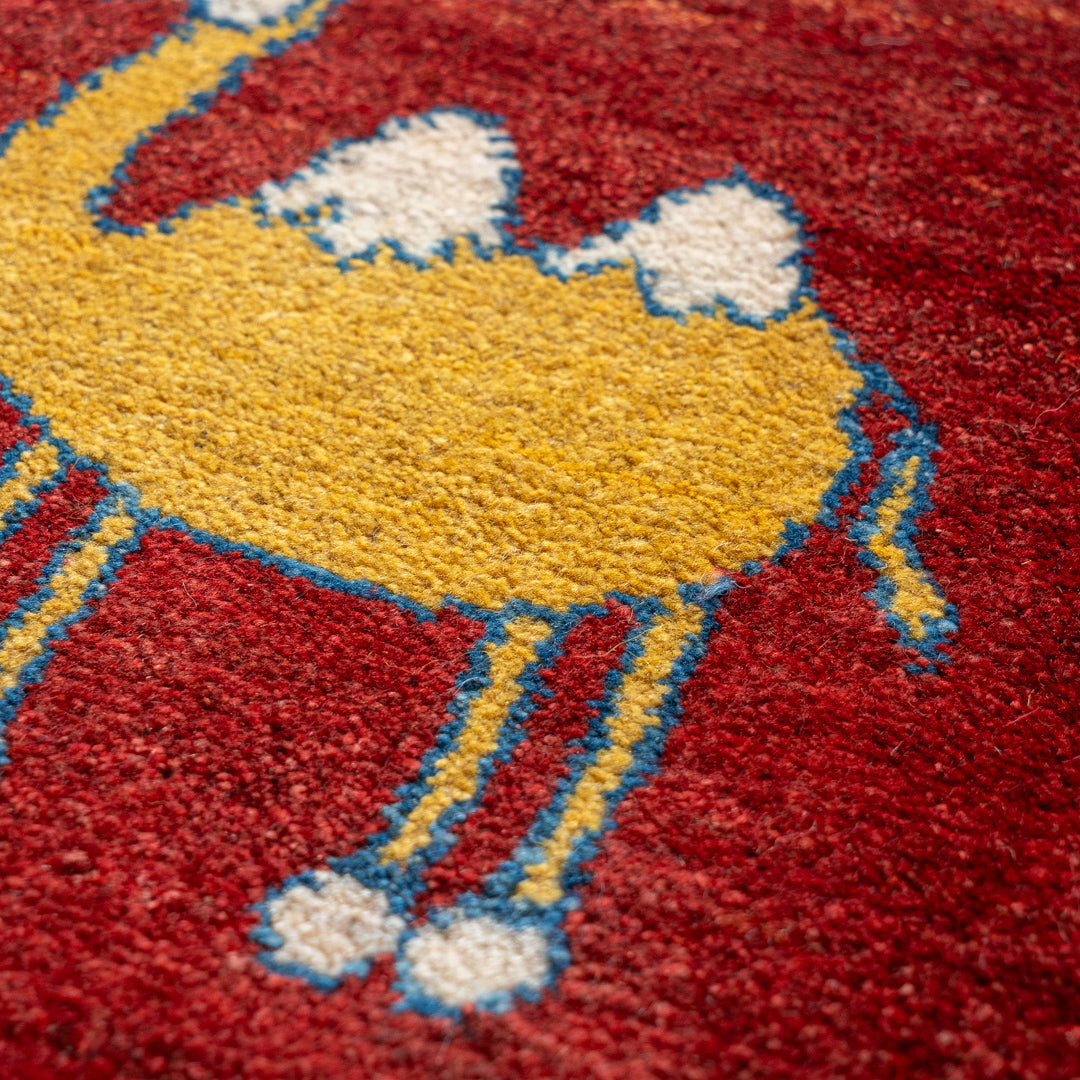 ギャッベはイランのザクロス山脈を遊牧しているカシュガイ族が手織りする、草木染の羊毛を使った毛足の長い生活に根付いた絨毯です。本商品に使用されているペルシャバリアントと呼ばれる羊毛は、過酷な環境であるザクロス山脈で生きていく為の優れた耐久性や、体温調整を上手に行うために多くの脂分を含んだ柔らかく触り心地の良い毛質を揃えています。