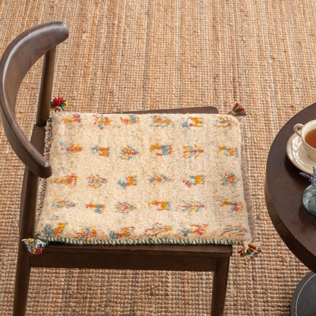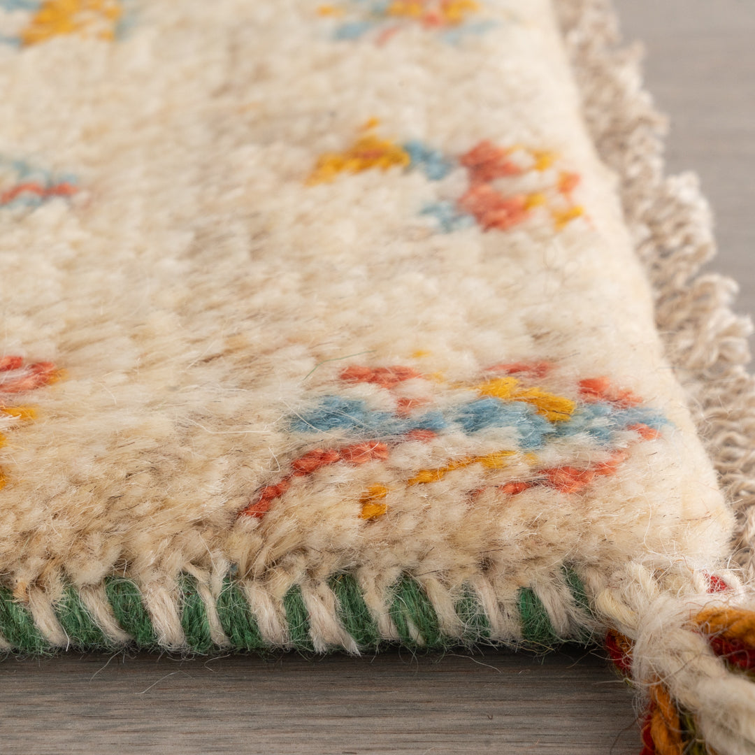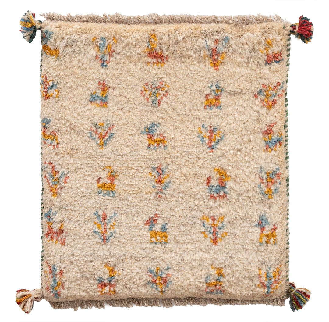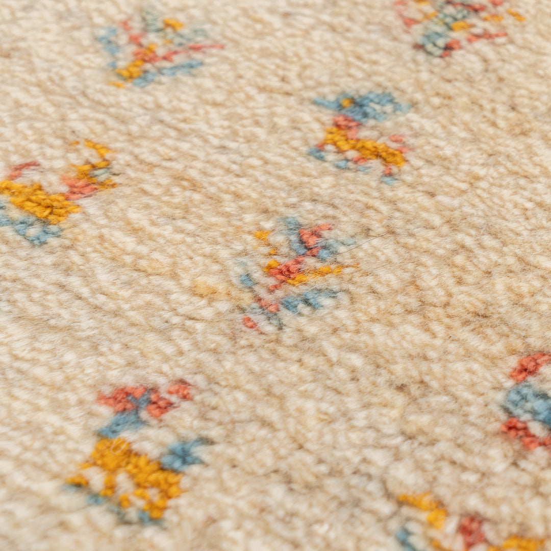 ギャッベはイランのザクロス山脈を遊牧しているカシュガイ族が手織りする、草木染の羊毛を使った毛足の長い生活に根付いた絨毯です。本商品に使用されているペルシャバリアントと呼ばれる羊毛は、過酷な環境であるザクロス山脈で生きていく為の優れた耐久性や、体温調整を上手に行うために多くの脂分を含んだ柔らかく触り心地の良い毛質を揃えています。