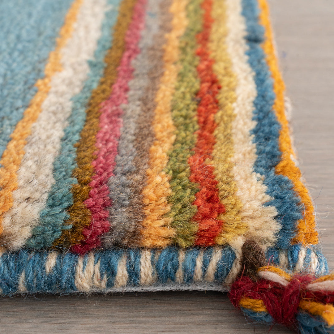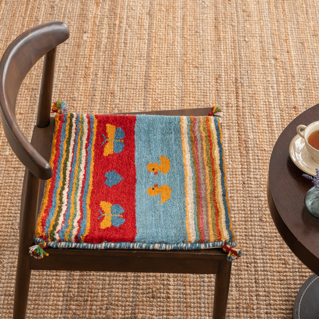 ギャッベはイランのザクロス山脈を遊牧しているカシュガイ族が手織りする、草木染の羊毛を使った毛足の長い生活に根付いた絨毯です。本商品に使用されているペルシャバリアントと呼ばれる羊毛は、過酷な環境であるザクロス山脈で生きていく為の優れた耐久性や、体温調整を上手に行うために多くの脂分を含んだ柔らかく触り心地の良い毛質を揃えています。
