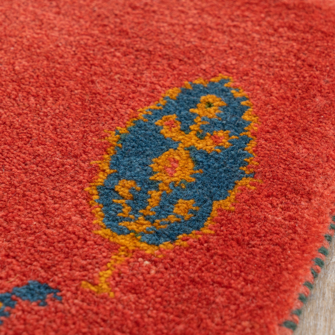 ギャッベはイランのザクロス山脈を遊牧しているカシュガイ族が手織りする、草木染の羊毛を使った毛足の長い生活に根付いた絨毯です。本商品に使用されているペルシャバリアントと呼ばれる羊毛は、過酷な環境であるザクロス山脈で生きていく為の優れた耐久性や、体温調整を上手に行うために多くの脂分を含んだ柔らかく触り心地の良い毛質を揃えています。