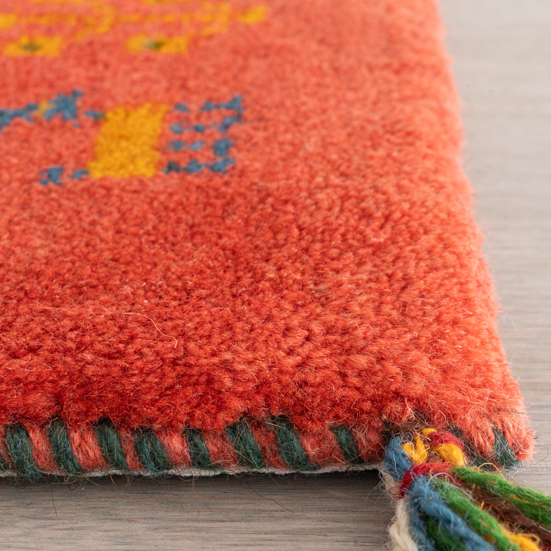 その羊毛を天然染料で染めて、イランの遊牧民が1本1本丁寧に手で織ったギャッベはフカフカで気持ち良い肌ざわりなのが特徴です。