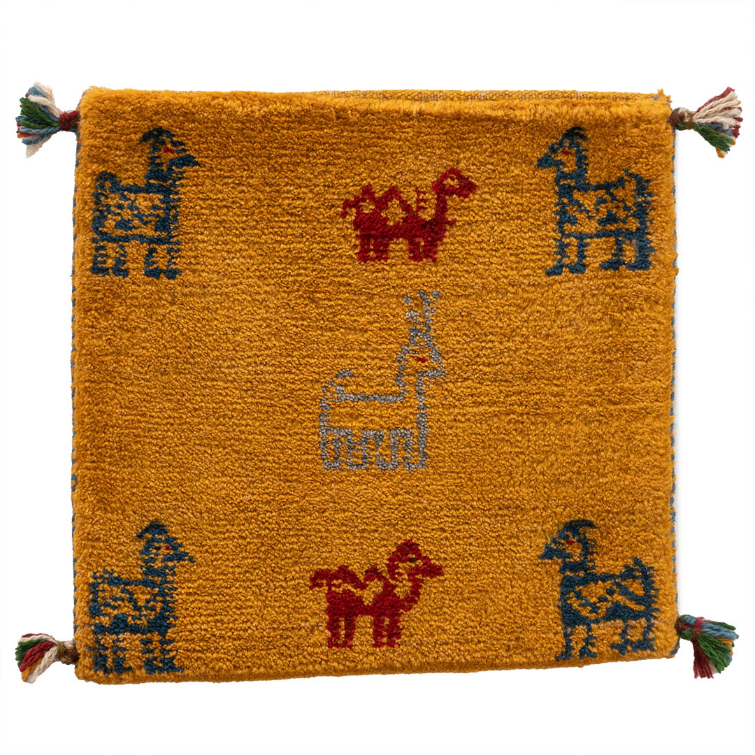 ギャッベ ペルシャ手織り絨毯 座布団 42×41cm