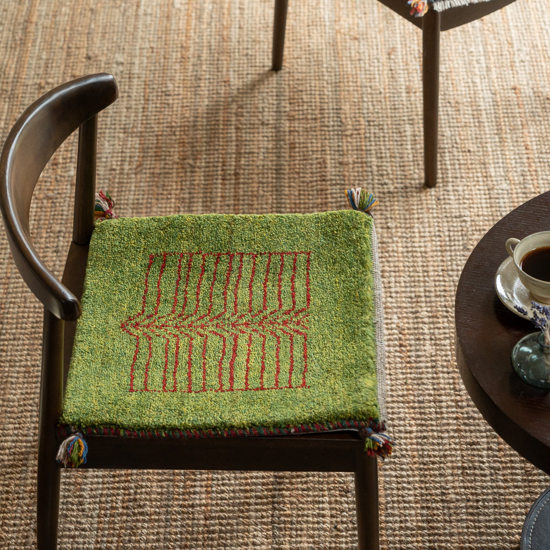 ギャッベはイランのザクロス山脈を遊牧しているカシュガイ族が手織りする、草木染の羊毛を使った毛足の長い生活に根付いた絨毯です。本商品に使用されているペルシャバリアントと呼ばれる羊毛は、過酷な環境であるザクロス山脈で生きていく為の優れた耐久性や、体温調整を上手に行うために多くの脂分を含んだ柔らかく触り心地の良い毛質を揃えています。