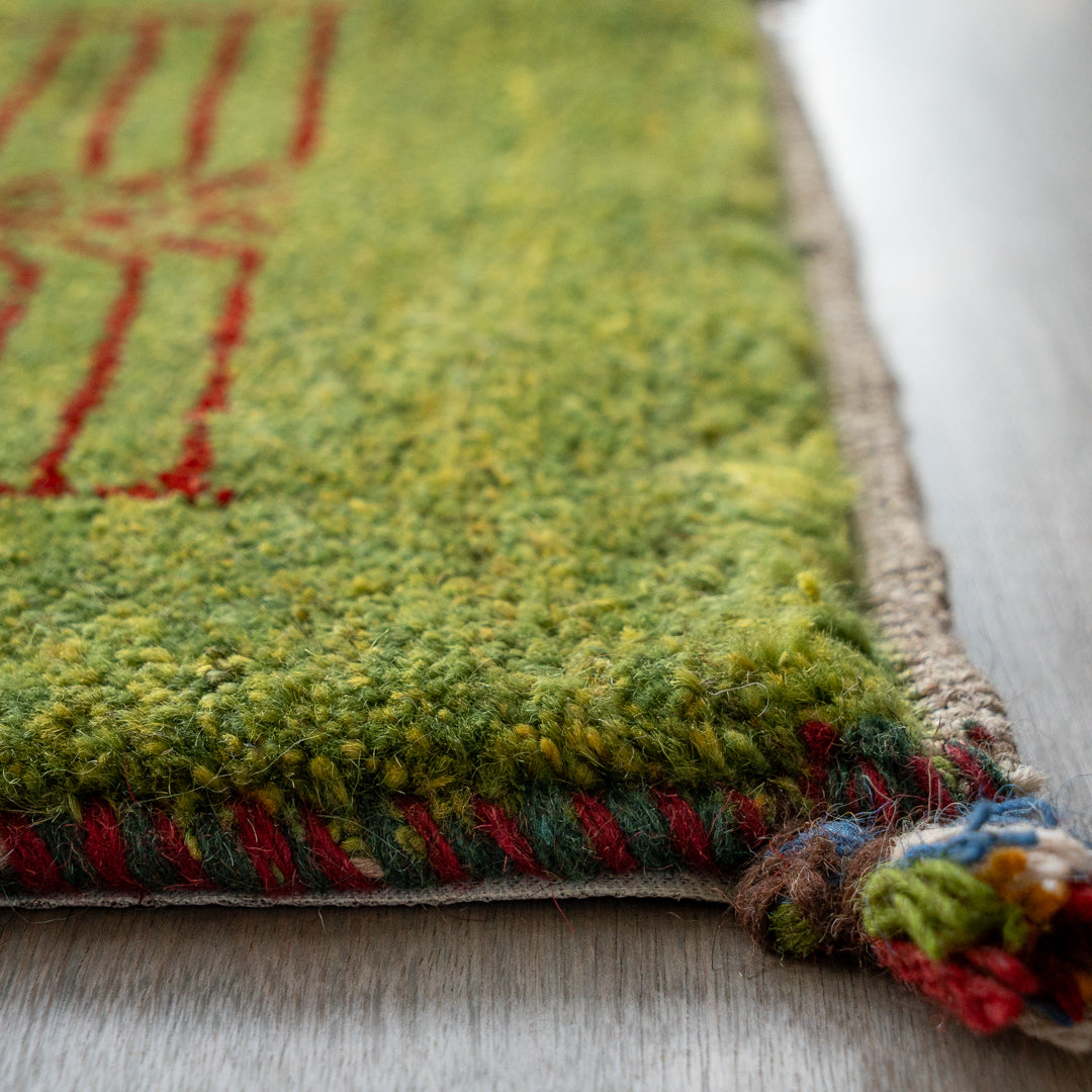 また、ギャッベは羊の毛で織られています。そのため羊毛を染めている染料の独特な匂いが生じる場合がございます。