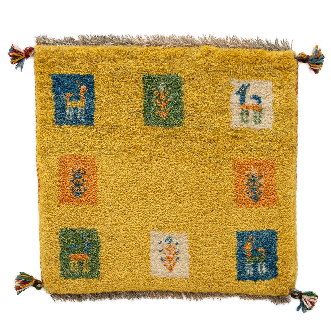 ギャッベ ペルシャ手織り絨毯 座布団 45×43cm